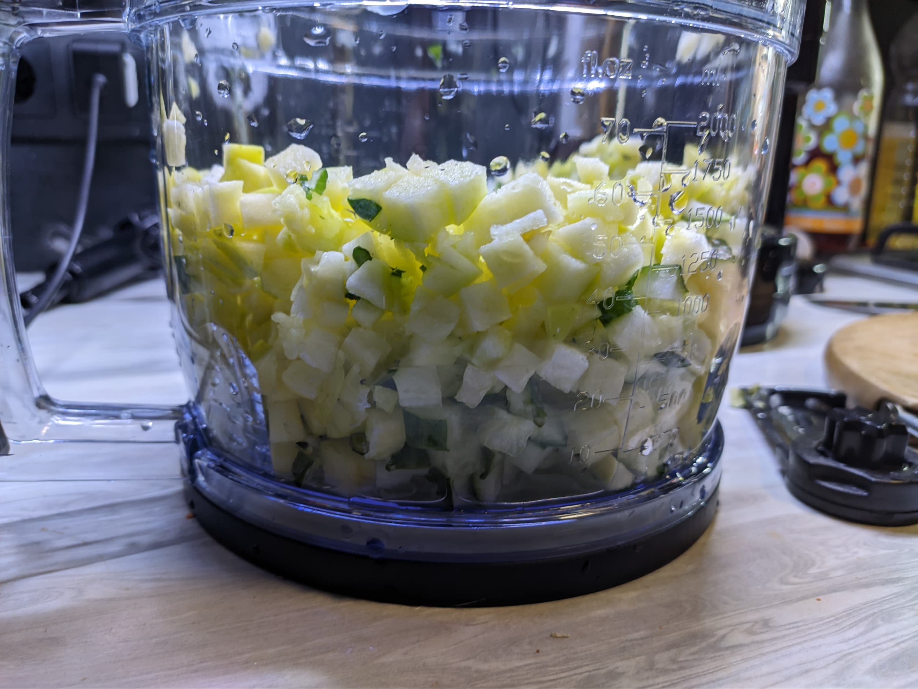 Для тестирования удобства дорожной бутылки, мы взяли кубики огурца и зеленого яблока, заготовленные нами ранее.