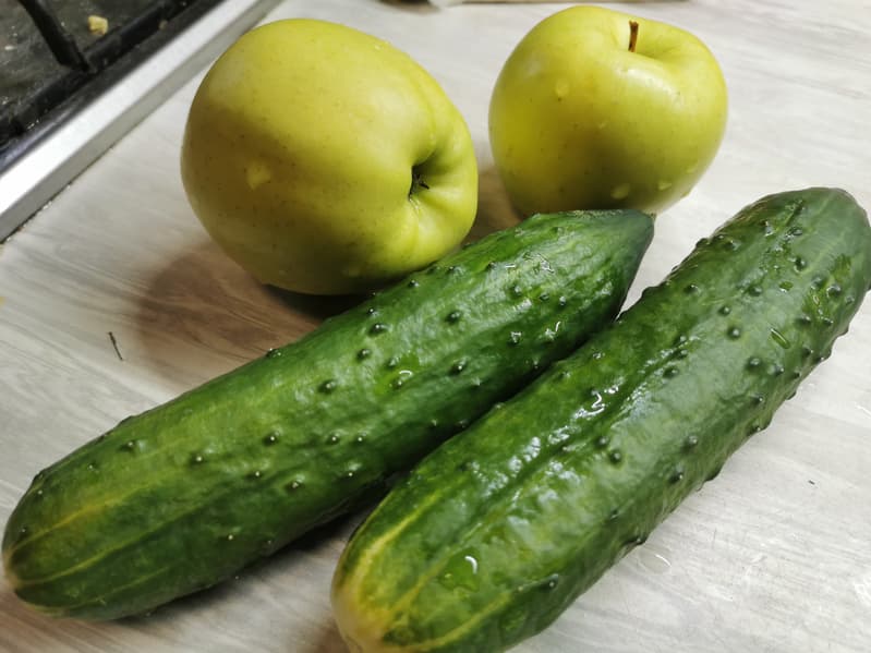 Яблоко и огурец (нарезка кубиками)
