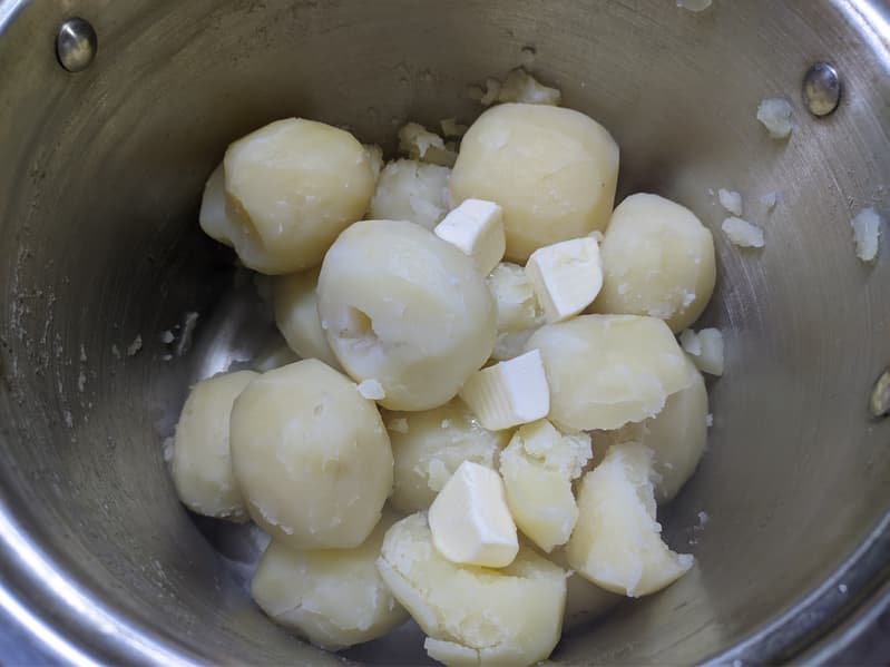 Мы слили воду и добавили к клубням несколько кусочков сливочного масла.
