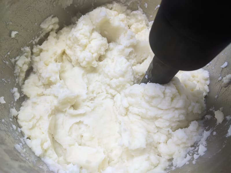 Мы подогрели молоко и добавили его к уже размятому картофелю. Итого процесс приготовления пюре из отварного картофеля занял у нас всего 3 минуты.