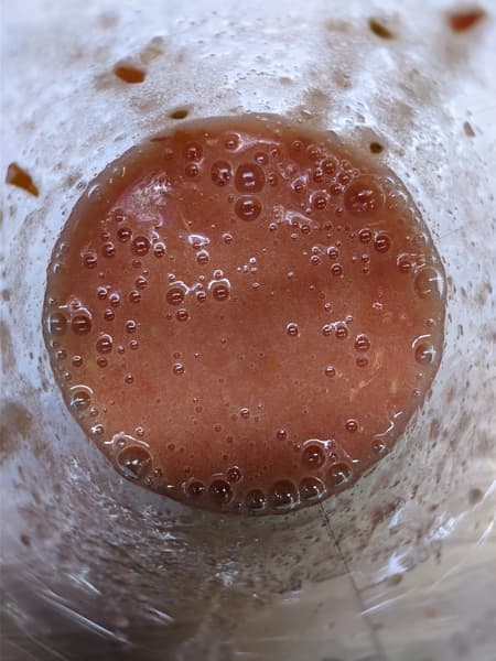 Мы поместили все ингредиенты в стакан для смешивания и запустили работу блендера сразу на 3-й скорости.