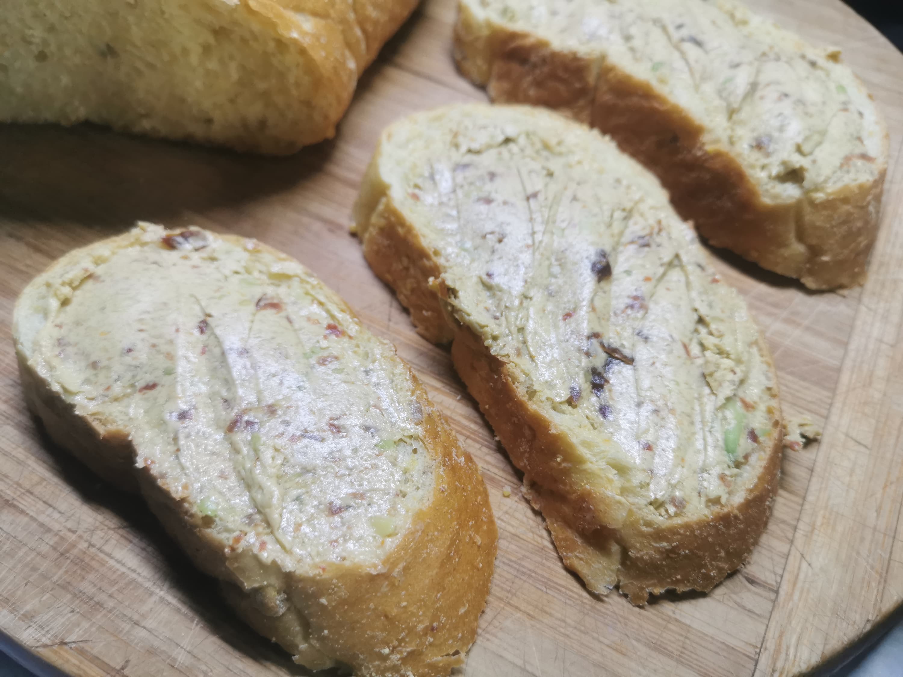 Через полчаса масло было готово к употреблению. Мы намазали его на темный и белый хлеб, чтобы выяснить, как будет вкуснее, но так и не пришли к единому мнению: оба варианта оказались прекрасны.