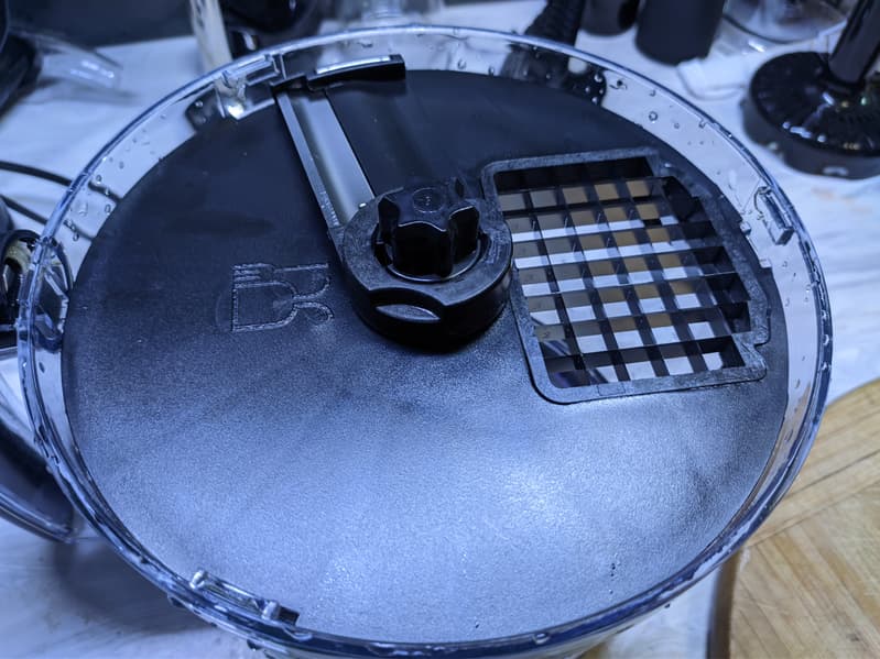 Из недостатков мы отметили некачественную полировку пластика на внутренней стороне крышки большой чаши — там обнаружились несколько пластиковых стружек, одна из которых попала в продукты во время измельчения. Но при этом материалы, из которых сделан прибор, оставляют действительно хорошее впечатление, как зрительно, так и тактильно. Поэтому вопросы именно к обрезке пластиковых деталей.