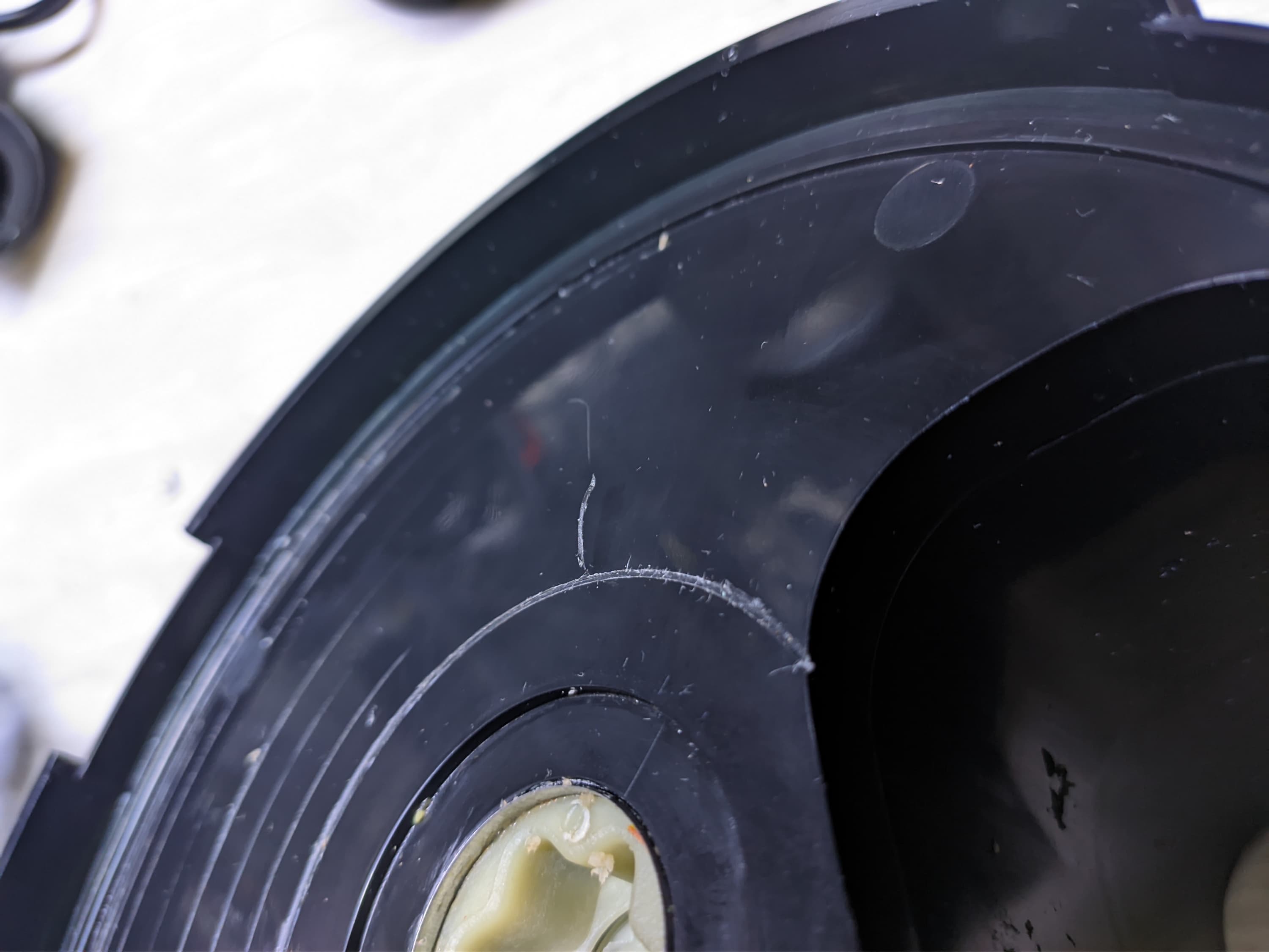 - небольшие нити из пластика на крышке чаши измельчителя