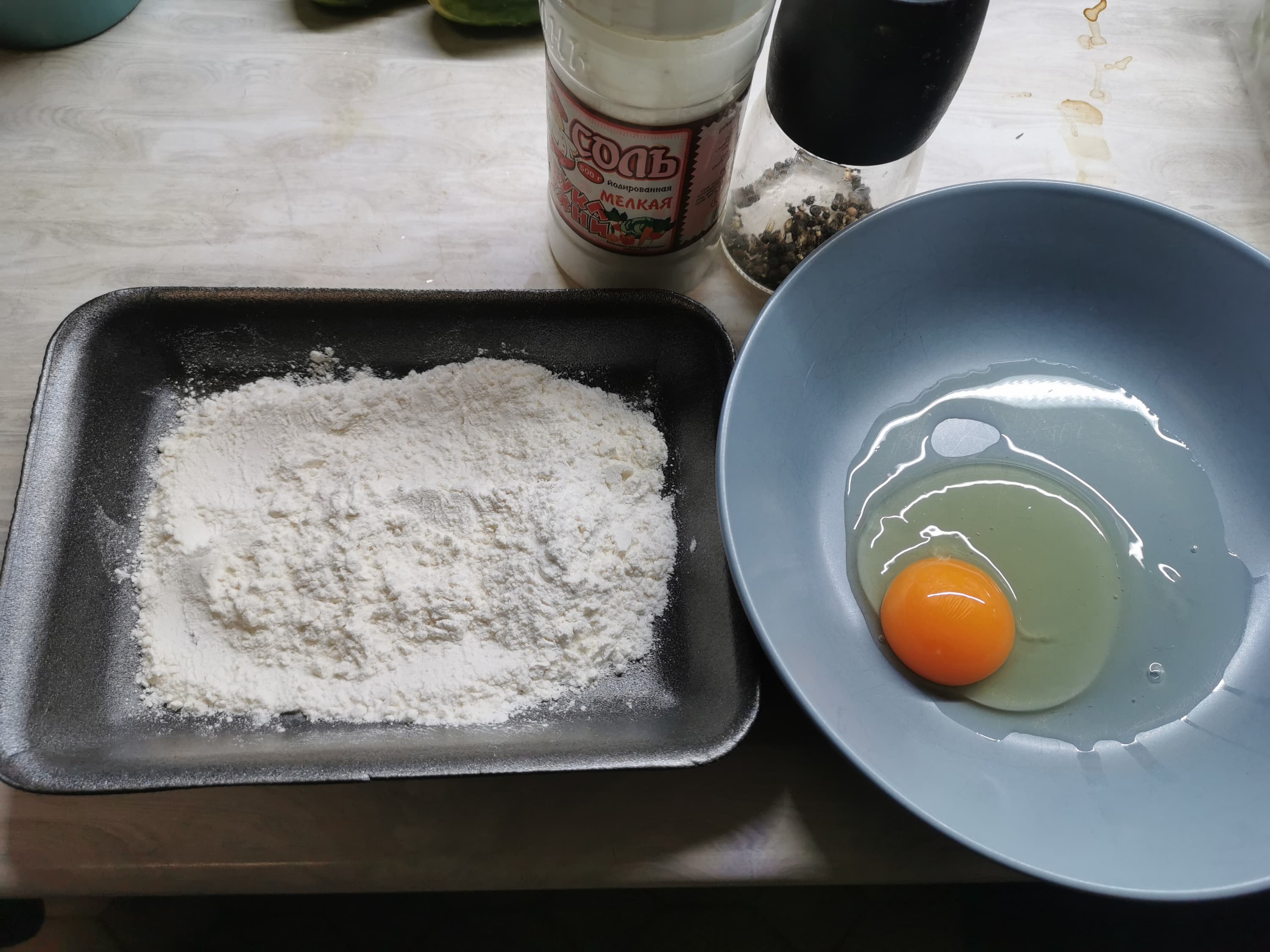 Также мы подготовили муку, яйцо и соль с перцем для наших драников.