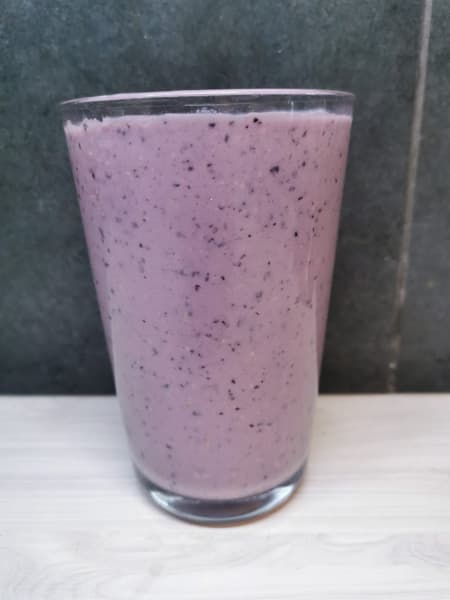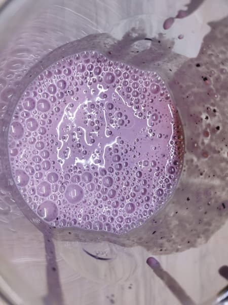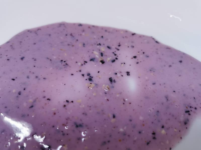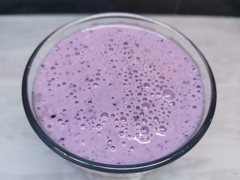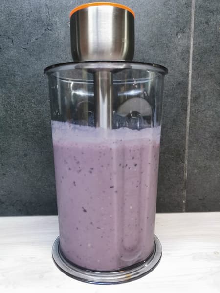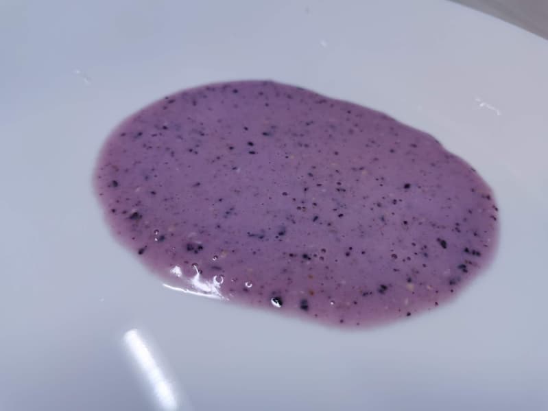 Невооруженным глазом видно, что в смузи присутствует множество кусочков голубики, но их одинаковый размер и количество говорят о том, что блендер справился с своей задачей достаточно хорошо.
