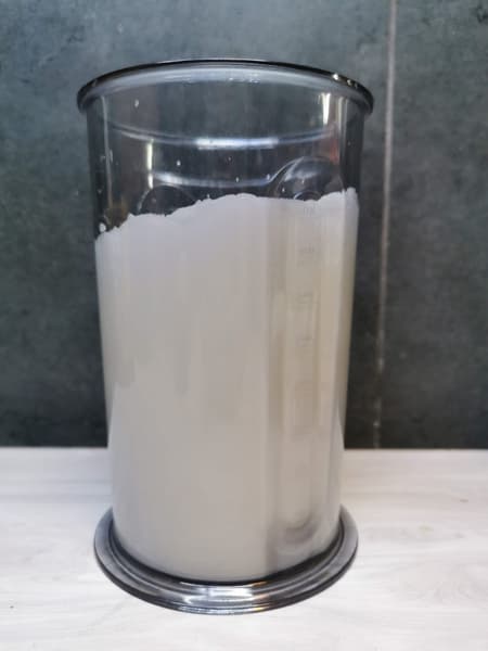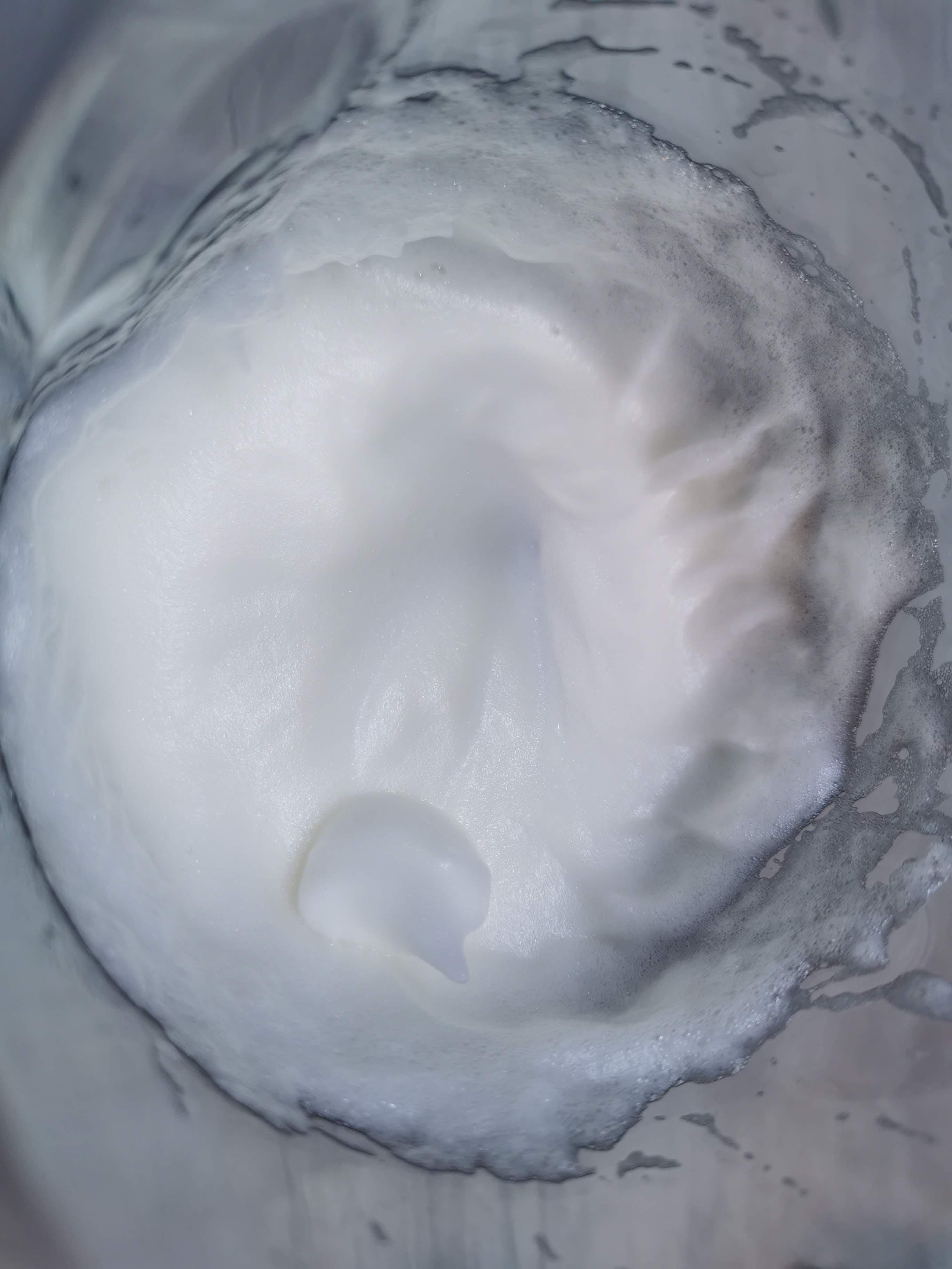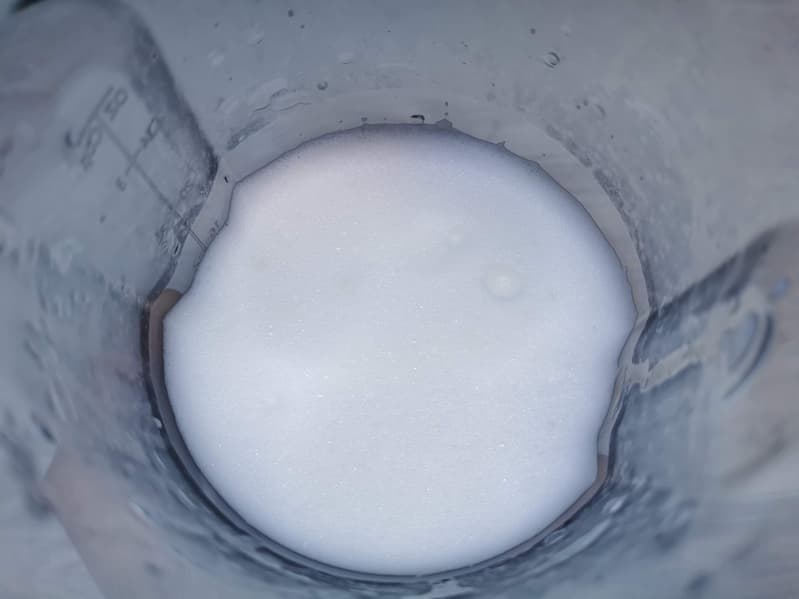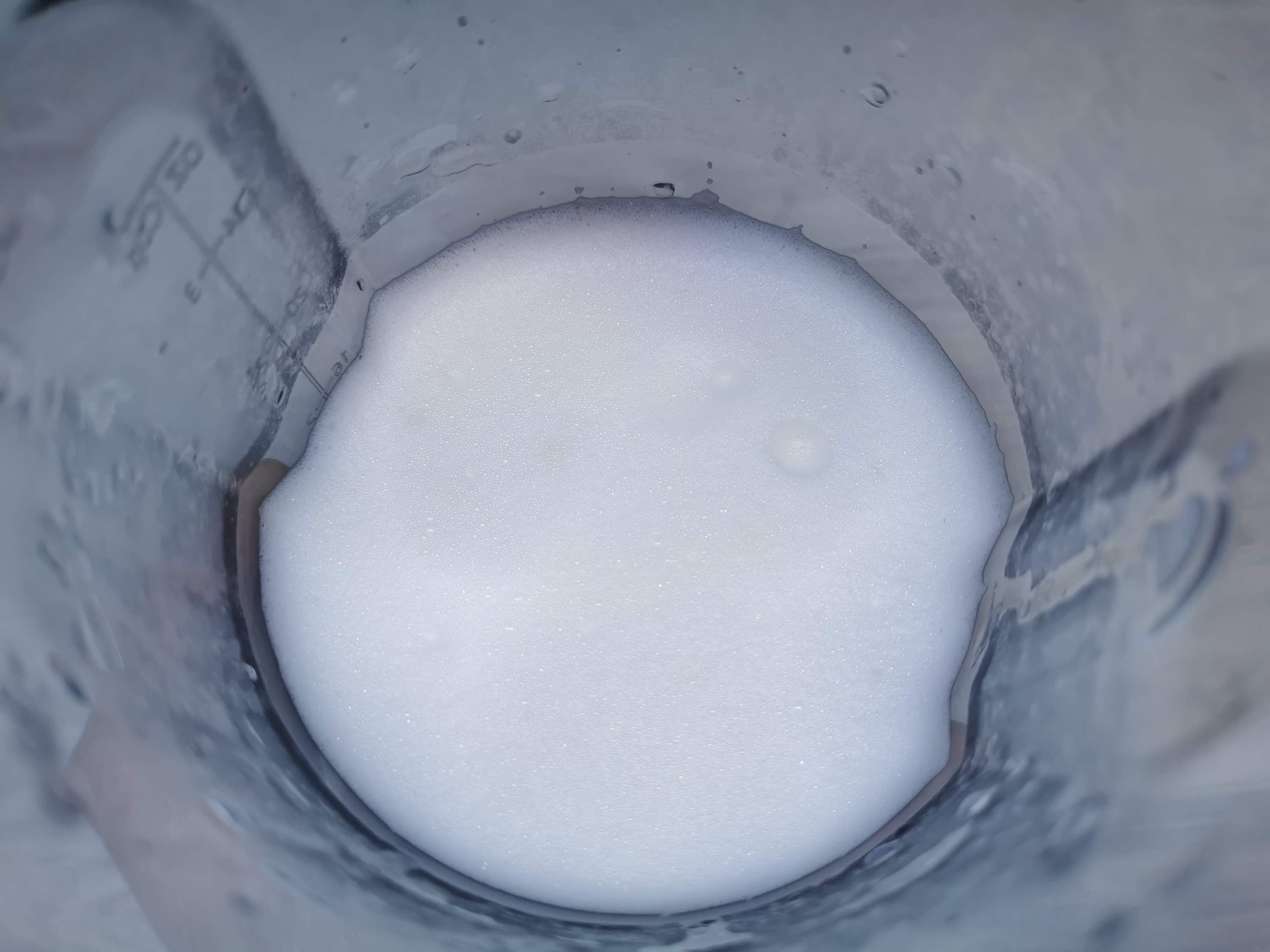 2 минуты взбивания на максимальной скорости — и мы получили большое количество густой мелкопузырьковой пены.