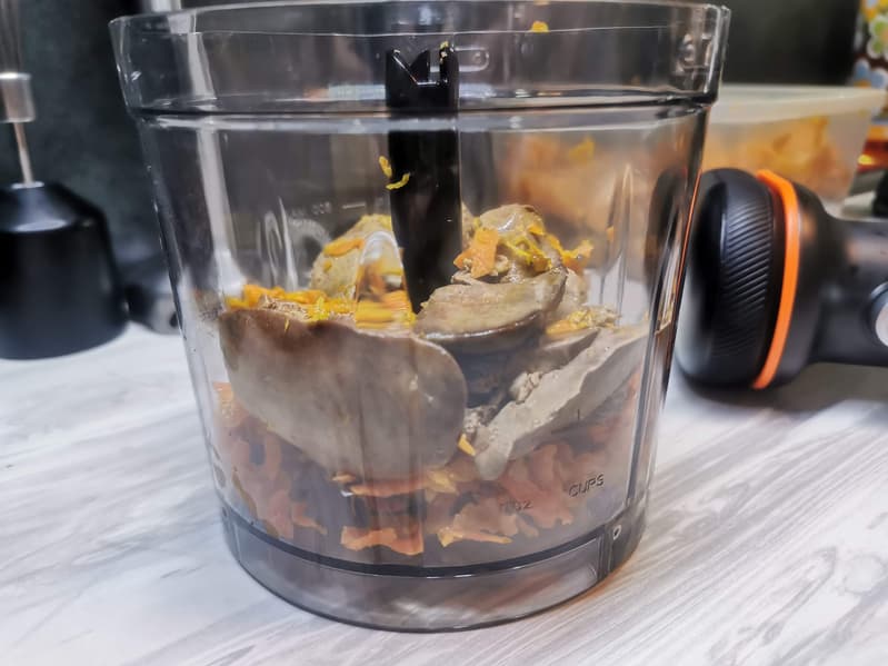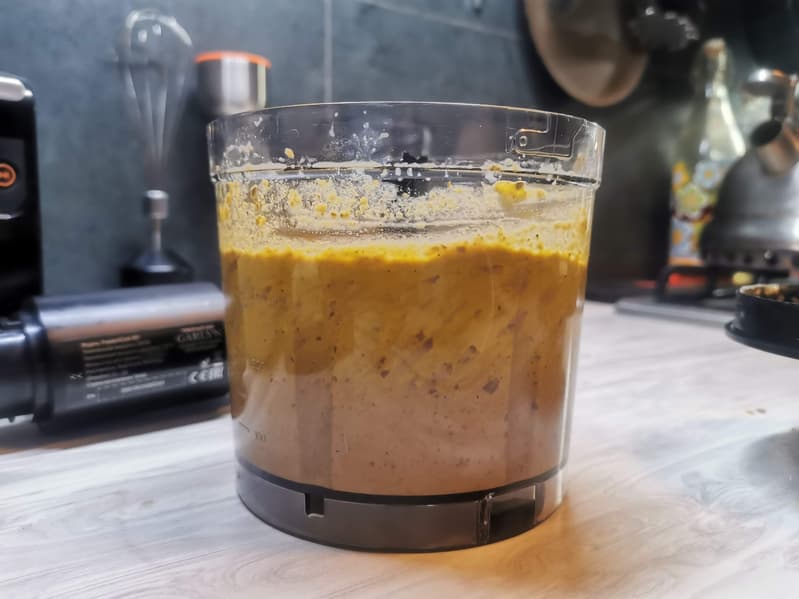 Прибор легко справился с с загрузкой на половину чаши, и как итог мы получили однородный ароматный паштет.
