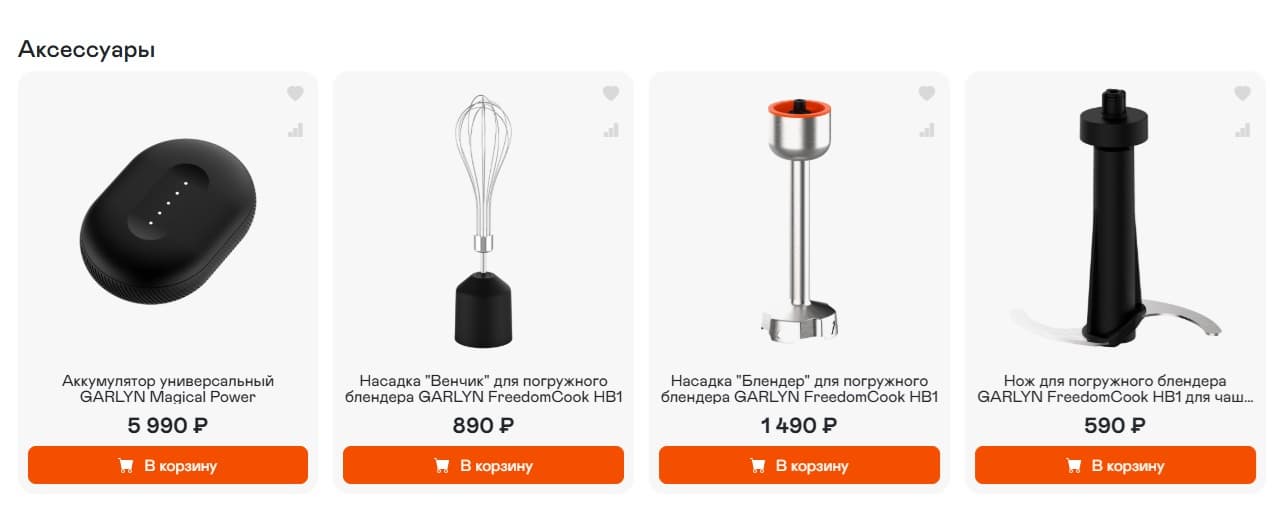 Отдельно хотим отметить то, что помимо качественного исполнения деталей прибора, Garlyn также дает возможность купить у них запасные насадки для этого блендера либо аккумулятор (если он есть в комплекте, то можно купить дополнительный). Отдельно продающиеся комплектующие — это мечта любого пользователя, ведь кто хочет покупать каждый раз новый прибор за большие деньги, когда гораздо удобнее и выгоднее менять отдельные запчасти.