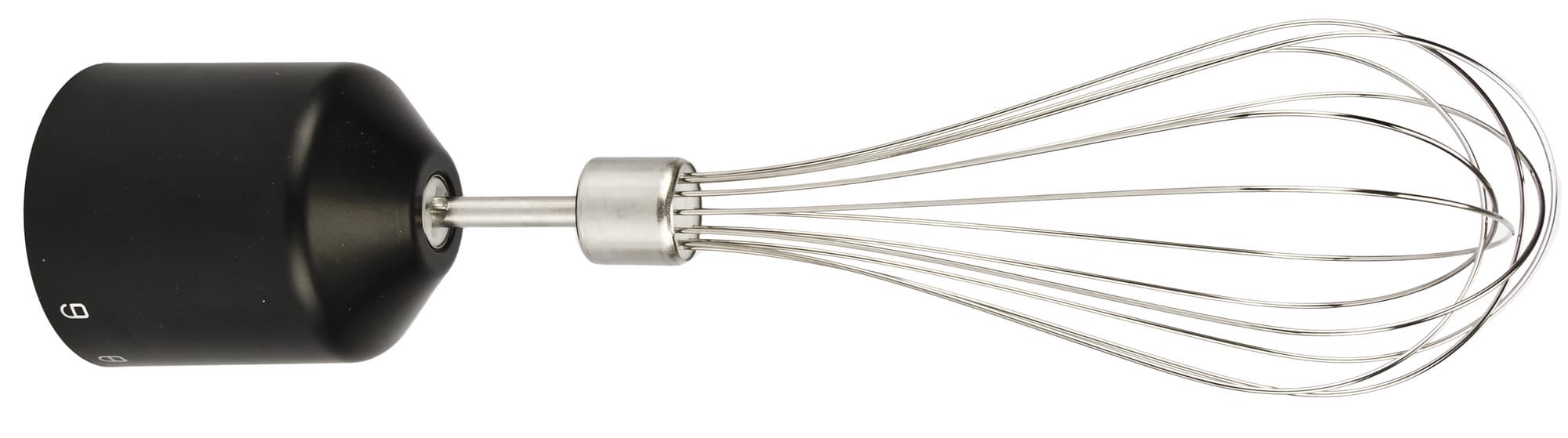 Разборная насадка-венчик классической конструкции состоит из пластиковой основы и насадки с шестью пересекающимися металлическими дугами.