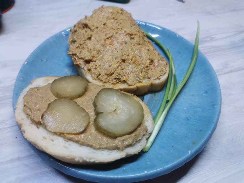 Итого у нас получилось два вида паштета — идеально однородный и состоящий из мелких сочных кусочков. Все едоки остались крайне довольны.