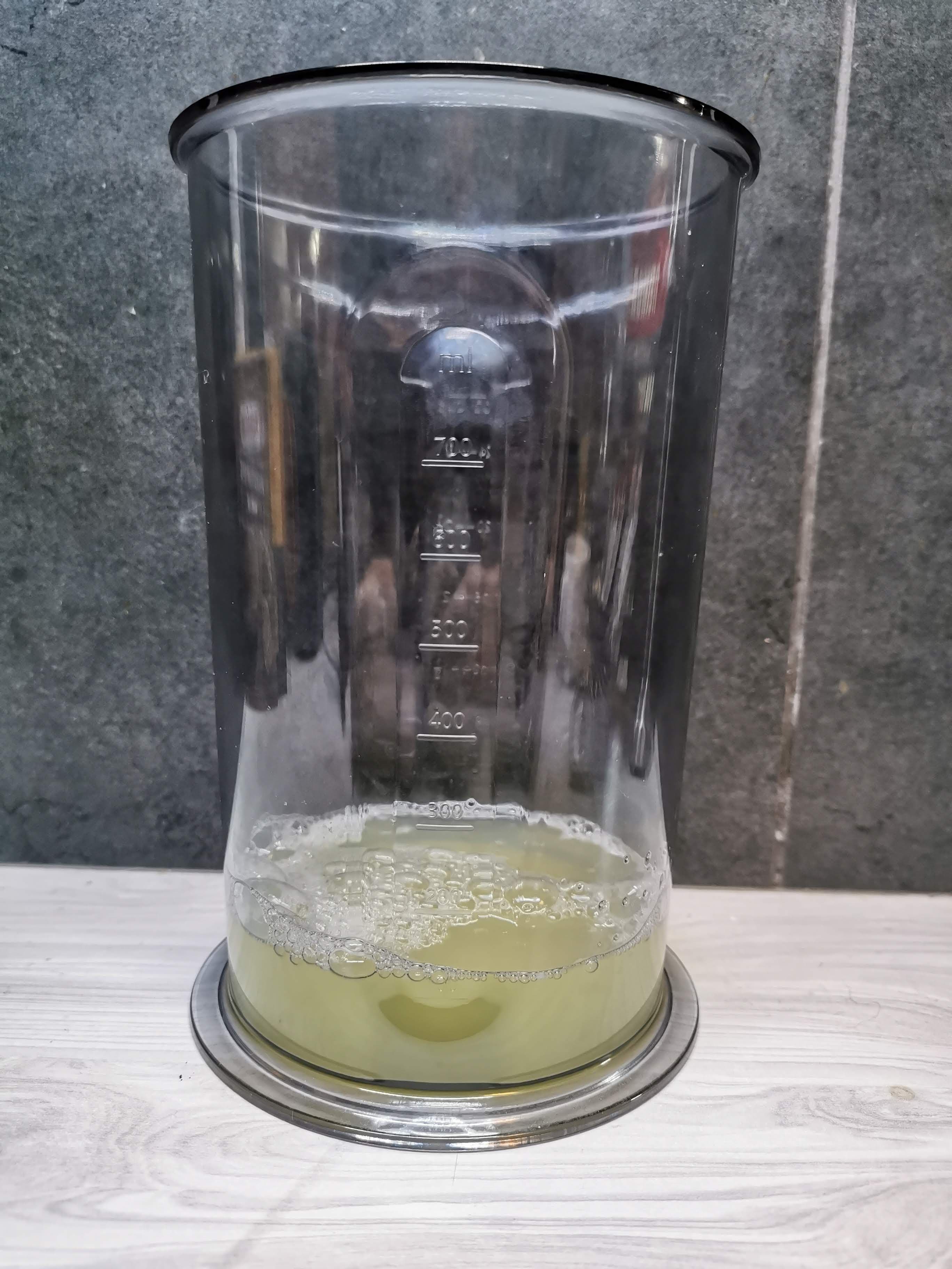 За 1,5 минуты работы на максимальной мощности блендер превратил наши ингредиенты в практически однородную смесь с небольшим количеством пузырей.