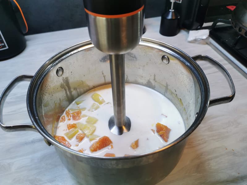 2,5 минуты — и идеальный крем-суп практически готов. Осталось только подогреть его на огне.