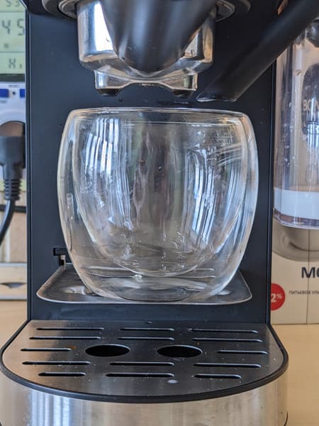 Получившийся эспрессо порадовал нас богатым вкусом и ароматом, достаточной температурой. Объем готового напитка оказался больше указанных в документации 20 мл. Но мы помним, что у нашей кофеварки богатые возможности по его регулировке: любители меньших порций смогут настроить их в соответствии со своими вкусами.