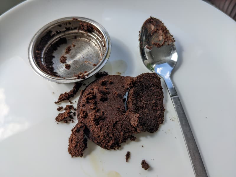Отработанная кофейная таблетка оказалась плотной, почти сухой.