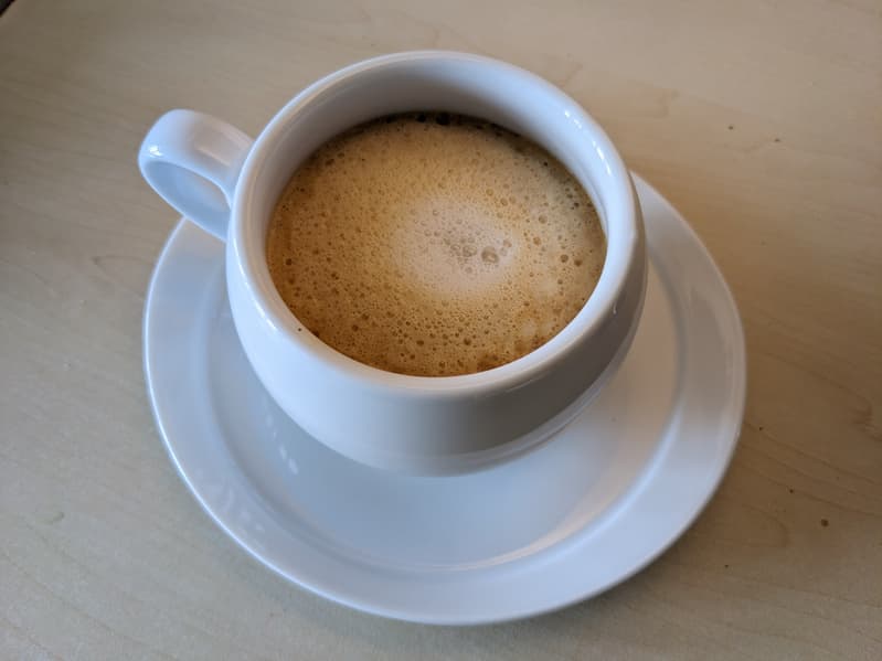Пенка у двойного эспрессо получилась более выраженная, чем у одинарного, а вкус, пожалуй, более насыщенный. Объем и здесь оказался существенно меньше указанных в документации 90 мл.