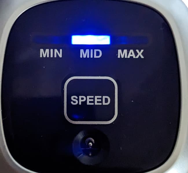 Для переключения уровней мощности (их у этой модели три) предназначена сенсорная кнопка на заднем торце моторного блока — на съемном аккумуляторе. По умолчанию M-2500 включается на средней скорости.