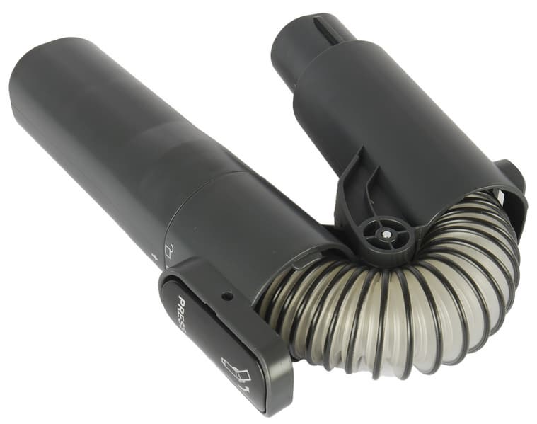 Оригинальная удлинительная трубка для ручной уборки оставила у нас двойственное впечатление. Возможность произвольно изогнуть в вертикальной плоскости воздушный тракт помогает добраться до участков, которые обычно обходят стороной: к примеру, до верхних поверхностей шкафов. Вытягивая из удлинителя гофрированную трубку, можно повысить маневренность насадки и увеличить радиус действия — это полезно, к примеру, при наведении порядка в салоне автомобиля.