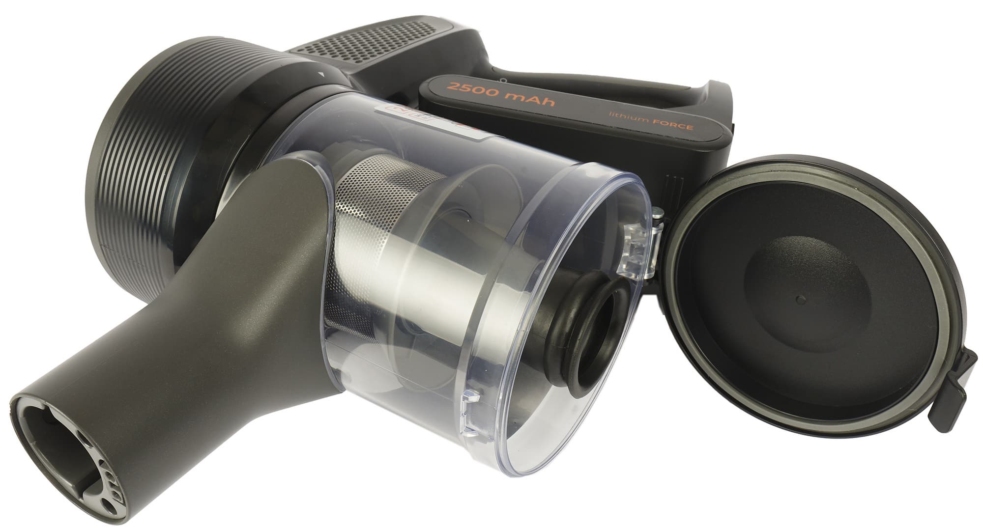Сочетание высокой мощности и удачной конструкции циклонного фильтра обеспечивает весьма хорошее качество очистки воздуха: после нескольких интенсивных уборок на внутренней поверхности циклона пыли почти нет.