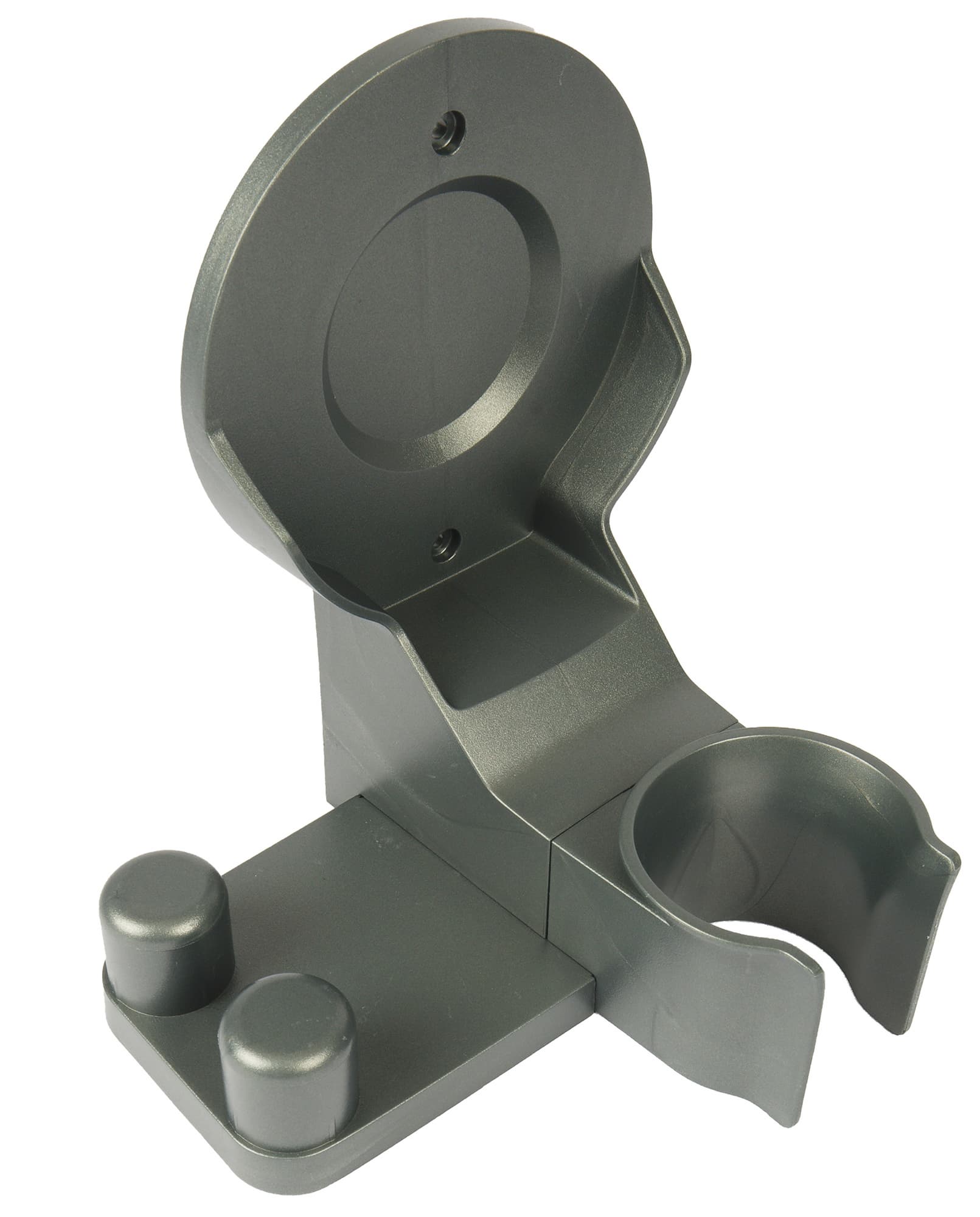 Настенное крепление также не удивляет оригинальностью конструкции: оно позволяет подвесить собранный пылесос, на нем два места для хранения наиболее часто используемых немоторизованных насадок. Место для третьей и гофрированной трубки владельцу придется искать самостоятельно.