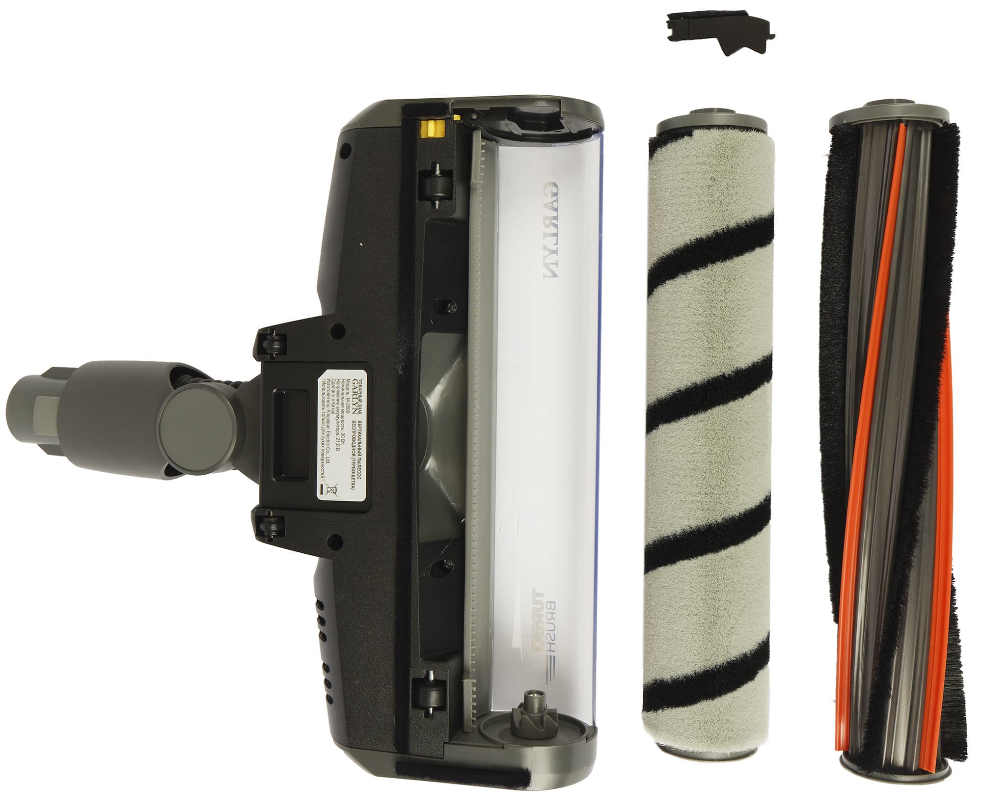 Конструкция половой щетки позволяет ей изгибаться относительно удлинительной трубки более чем на 90° вперед-назад и вправо-влево. Положения для вертикальной парковки у нее нет. Прозрачная крышка ротора позволяет легко контролировать его вращение и вовремя убирать то, что в нем застряло и мешает работать.
