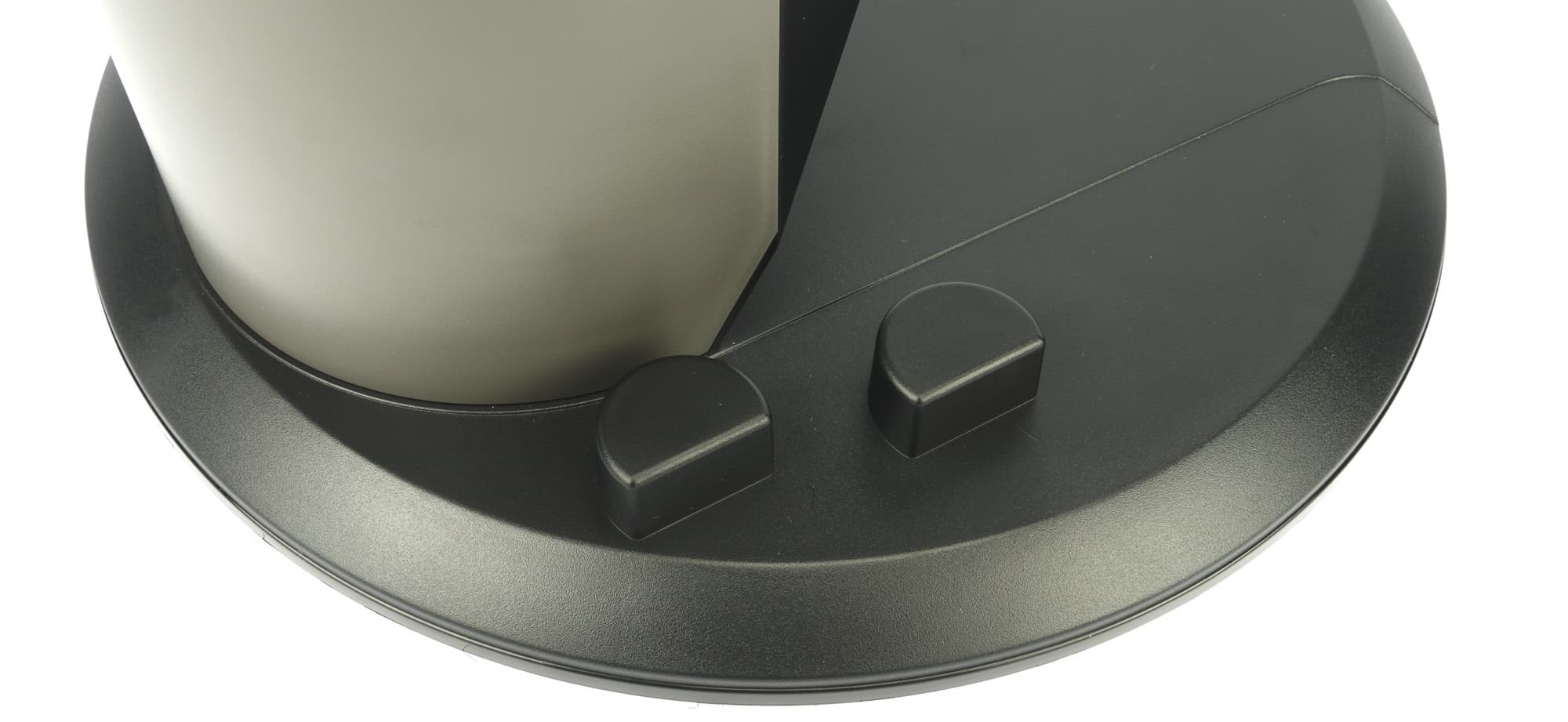 Базовая станция имеет форму колонны, установленной на дисковое основание. Передняя панель откидывается, обеспечивая доступ к отсеку для мусора.