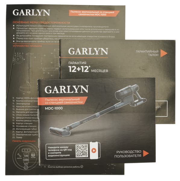 Как всегда у Garlyn, полиграфическое исполнение документов прекрасное: рисунки, схемы и мелкий шрифт разборчивы и читаются без труда. В инструкции содержится подробная информация о подготовке пылесоса к работе, его эксплуатации и уходу за ним.