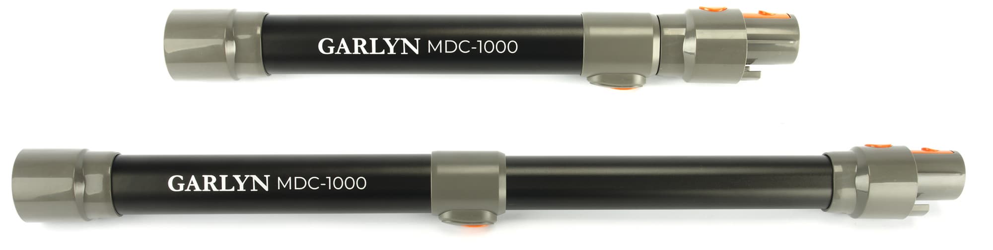 Компоновка Garlyn MDC-1000 продольная: цилиндрический контейнер с циклонным фильтром расположен параллельно воздушному тракту. За ним размещен двигатель, а выпускные решетки находятся в задней части моторного блока, справа и слева.