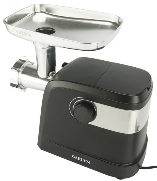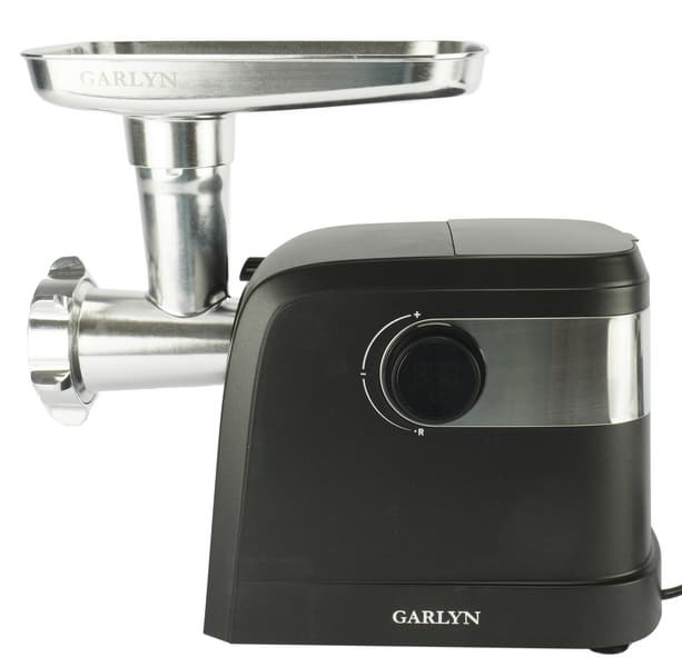 Электрическая мясорубка Garlyn MG-2000 отличается компактным размером и широкой комплектацией. В арсенале устройства — три диска для изготовления фарша разной степени измельчения, насадки для изготовления колбас и кеббе, а также блок овощерезки с пятью насадками. Для удобства хранения перфорированных решеток и некоторых дополнительных насадок в корпусе прибора организован специальный отсек.