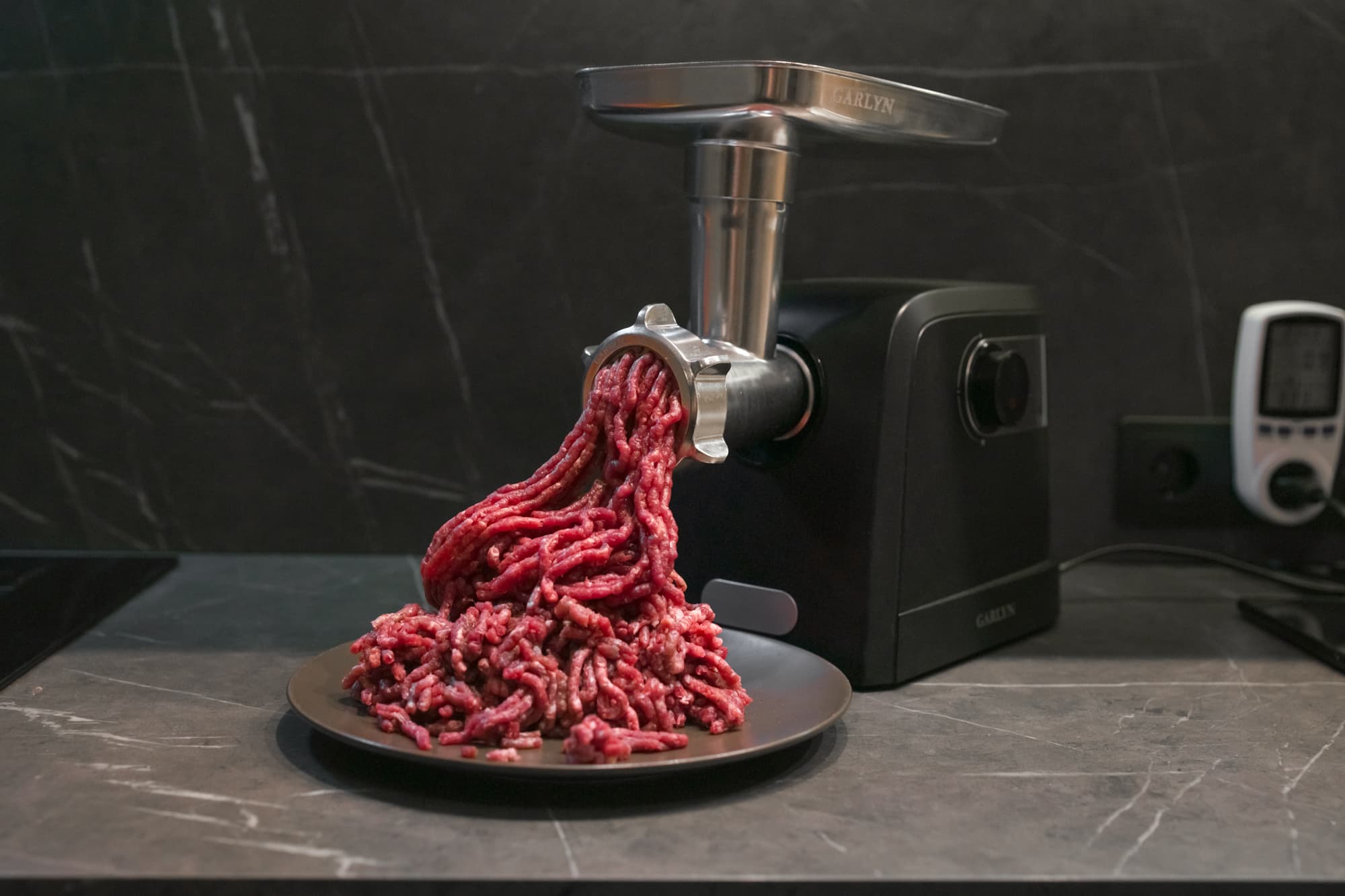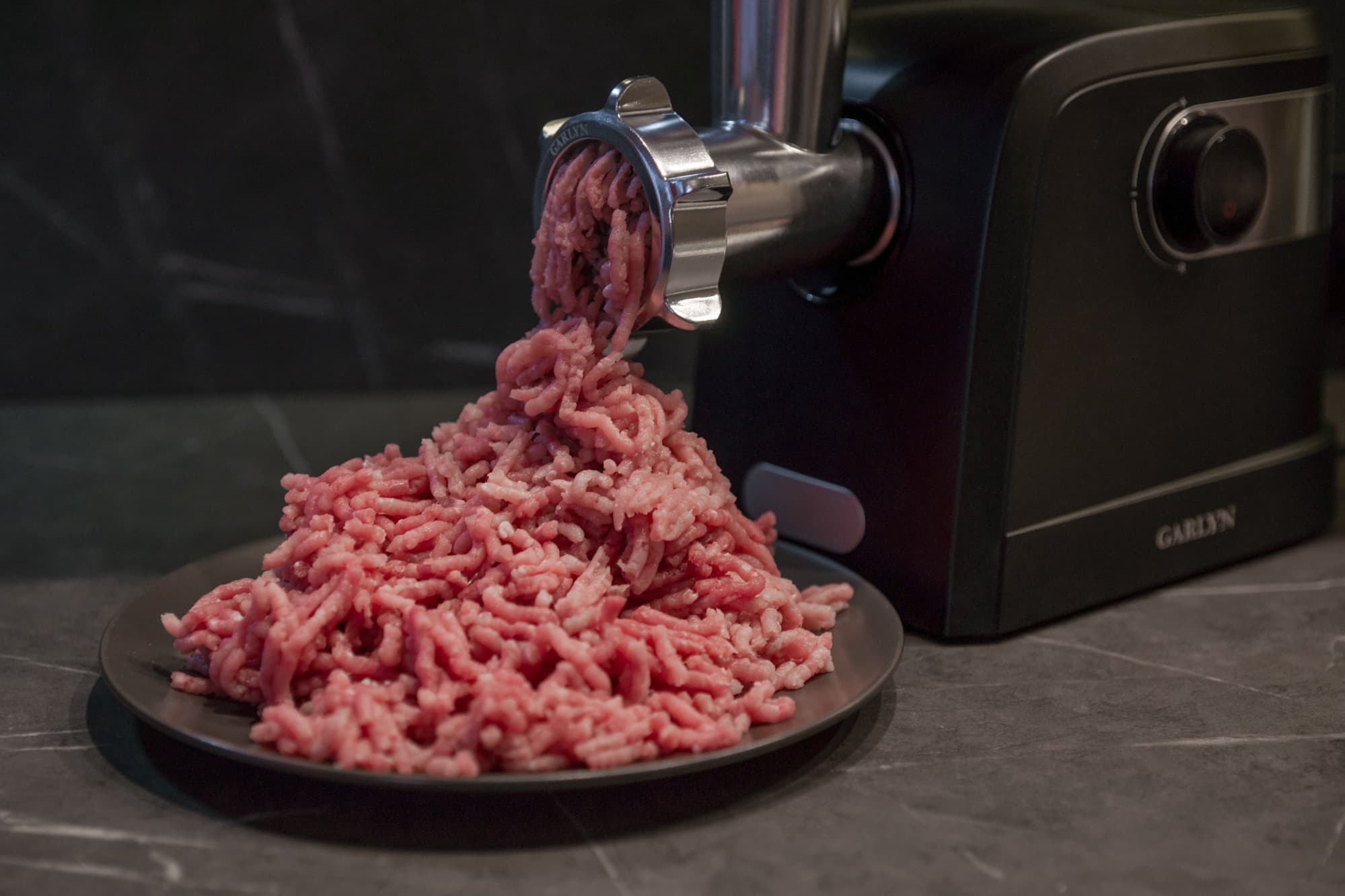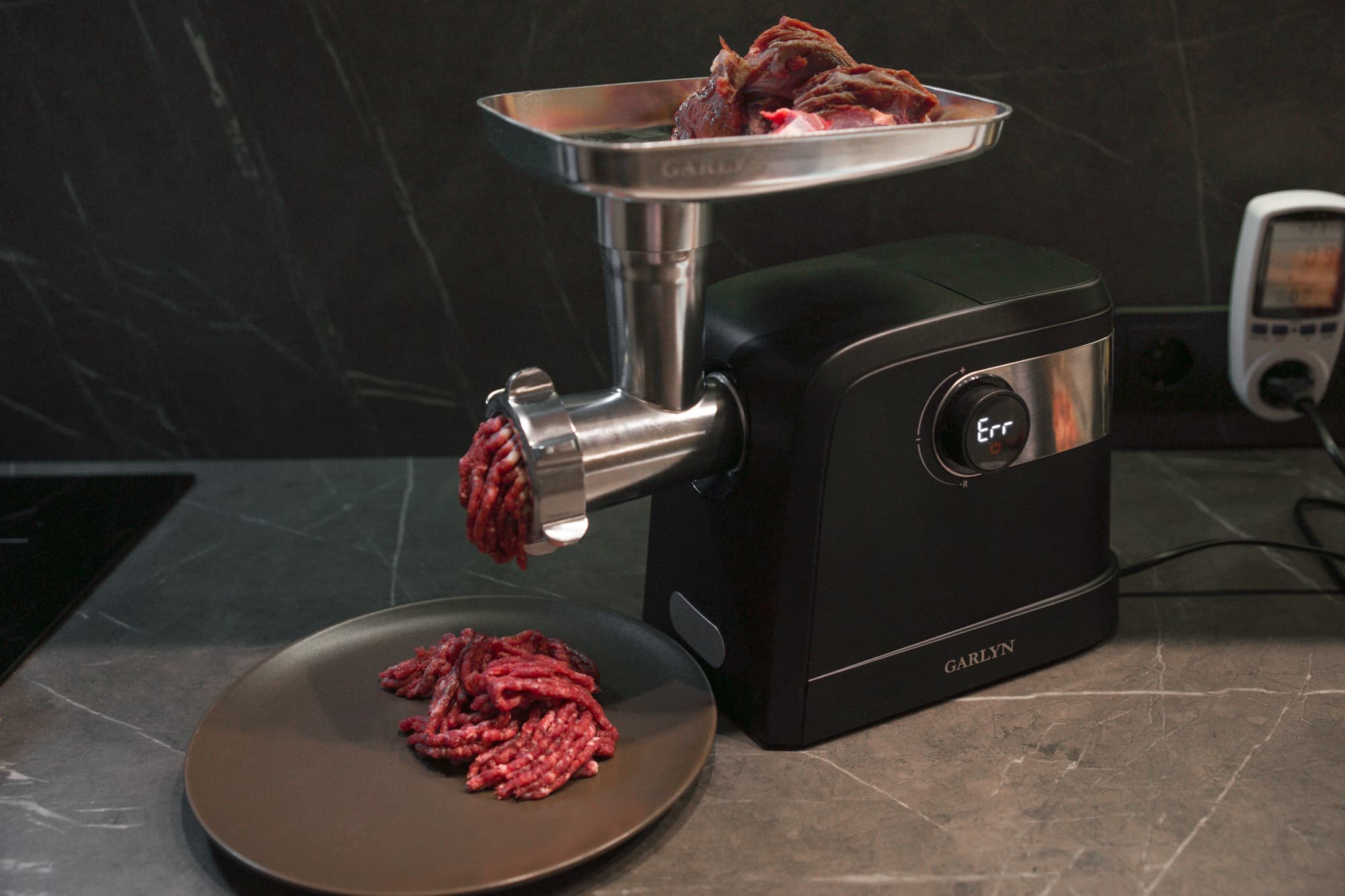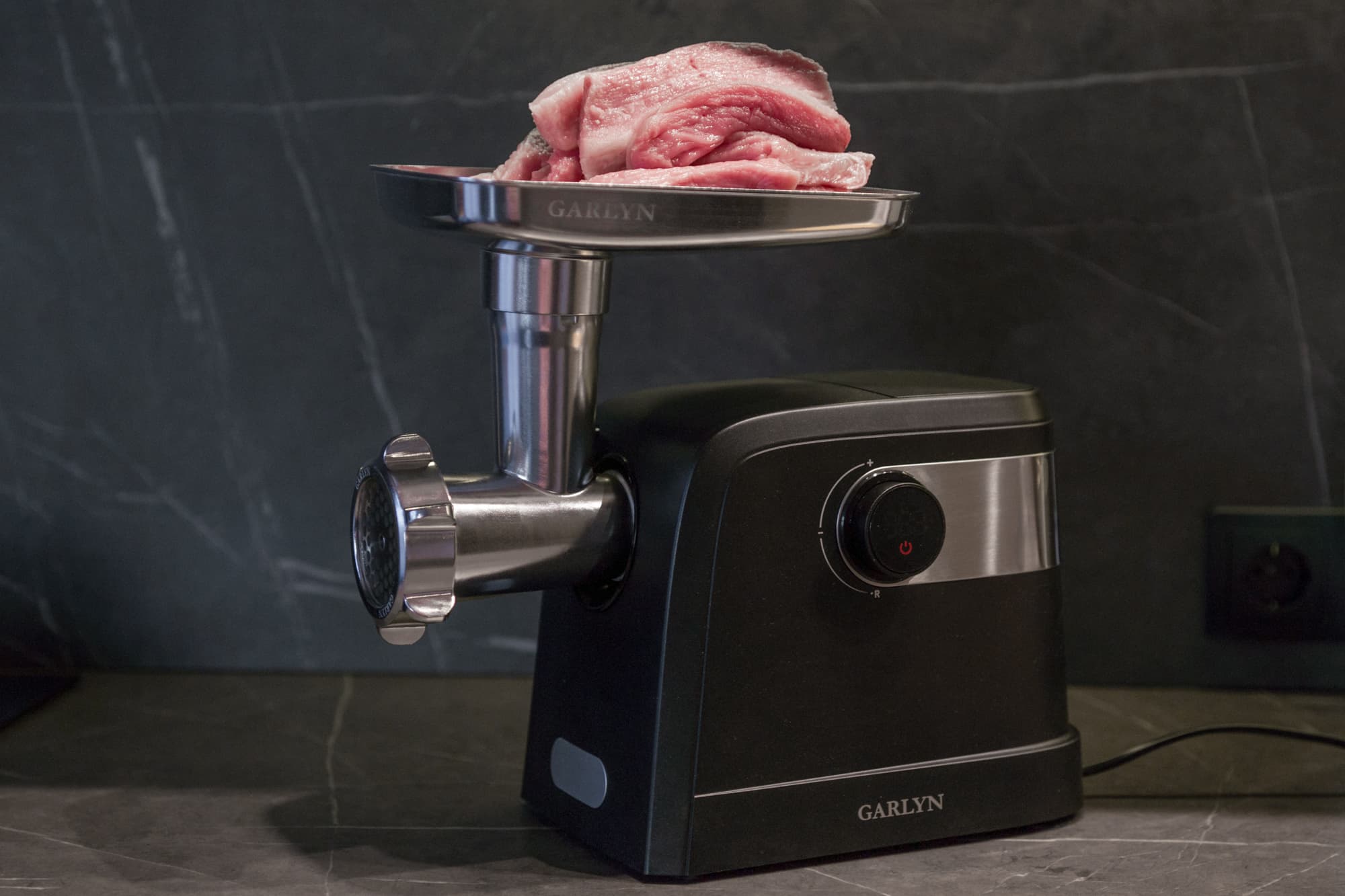 Мясорубка Garlyn MG-2000 удобна в эксплуатации, управление и сборка-разборка — элементарные. Корпус устойчивой формы снабжен присосками, благодаря которым аппарат не сдвигается с места во время работы даже при высокой нагрузке. Прибор не занимает много места и оснащен вместительным контейнером для аксессуаров. Хотелось бы отметить и комплектацию: помимо трех стандартных дисков для переработки фарша и насадок для колбасок и кеббе, присутствуют насадка-овощерезка с пятью цилиндрами для разных видов измельчения и запас предохранителей для шнека мясорубки.