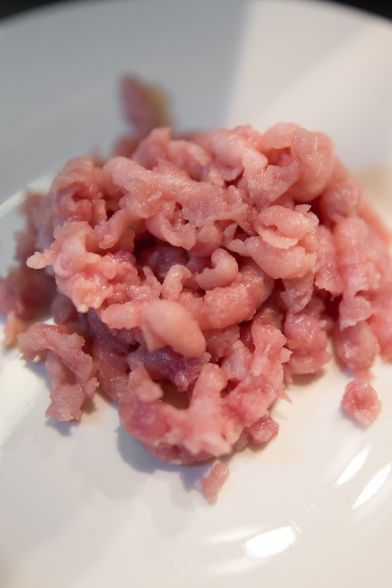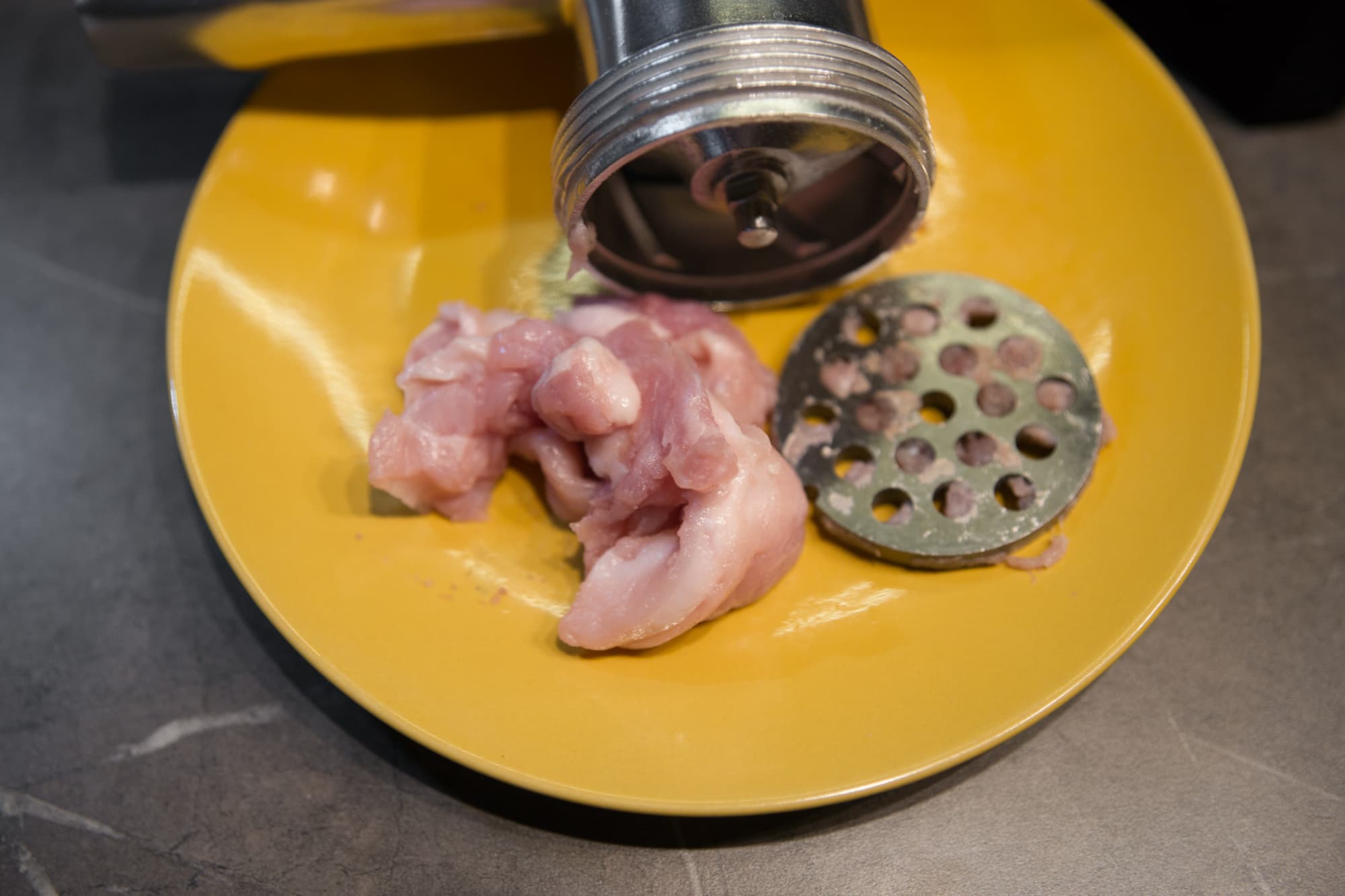 Первый, традиционный и обязательный тест — это фарш из свиного окорока.