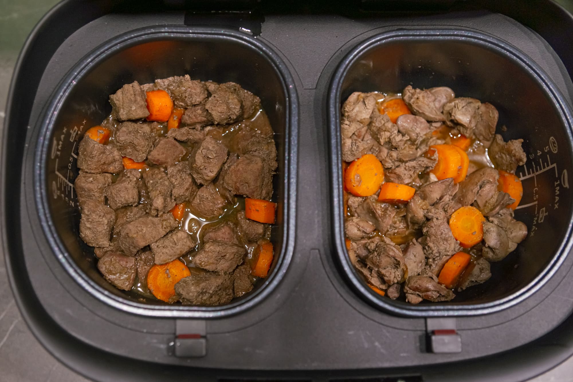 В этом тесте мы задействуем обе чаши и сделаем два паштета, один из говяжьей, а другой из куриной печени.