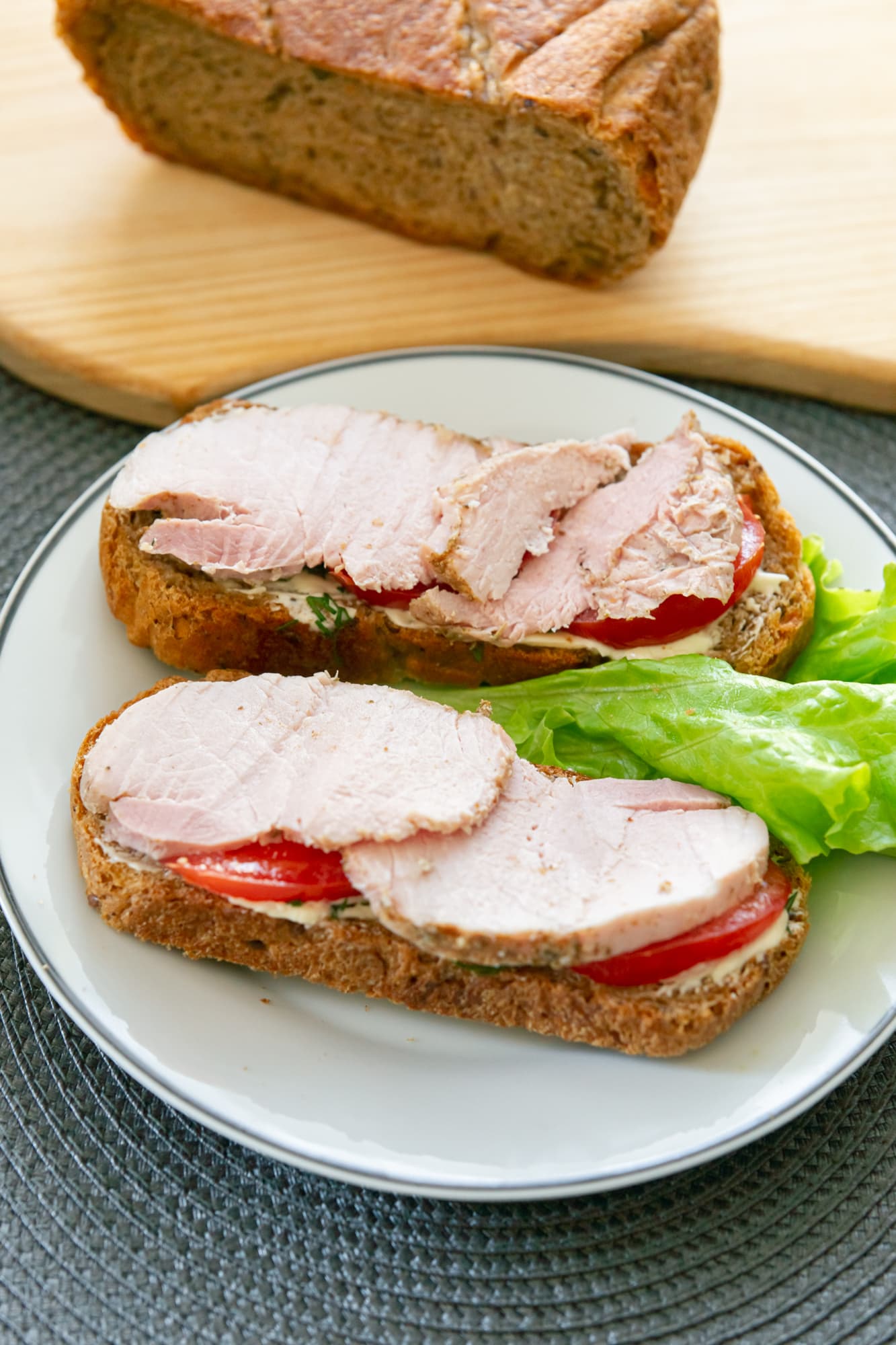 На следующий день хлеб был так же прекрасен, как и сразу после выпечки — не потерял своих вкусовых качеств и отлично подошел к ветчине из предыдущего теста.