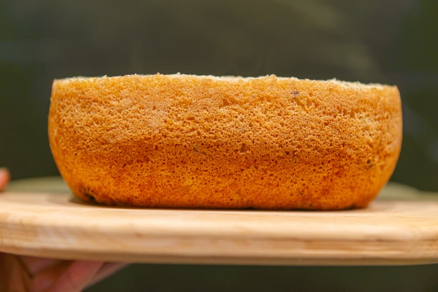 Тесто хорошо пропеклось, не пересушилось, получилось воздушным, пористым и очень вкусным. По краям и внизу ничего не подгорело.