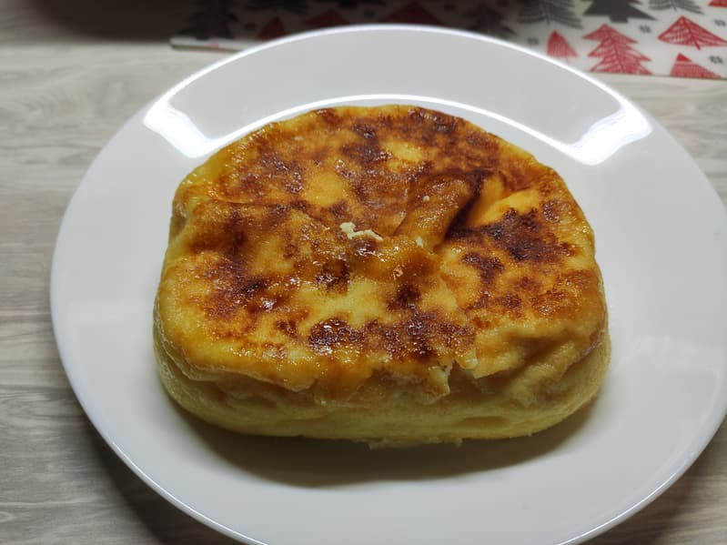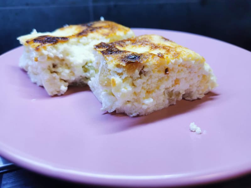 По истечении времени мы вынули нашу запеканку, перевернули ее и разрезали, чтобы проверить готовность. Всё получилось, и мы остались довольны качеством выпечки. Но запеканка получилась с явным соленым привкусом, и в следующий раз мы добавим соли раза в 3 меньше рекомендуемого.