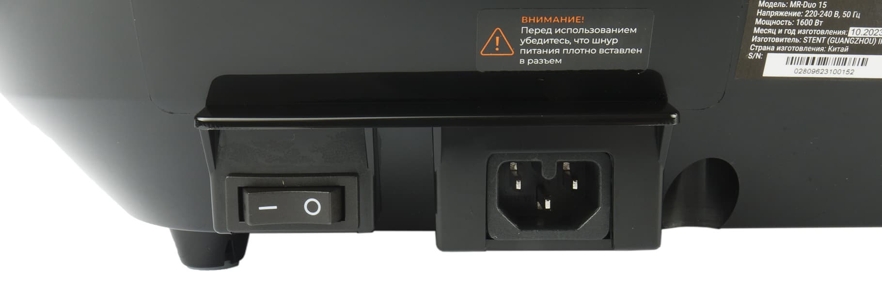 Механический выключатель прибора можно найти у мультиварки сзади, рядом с разъемом шнура электропитания.
