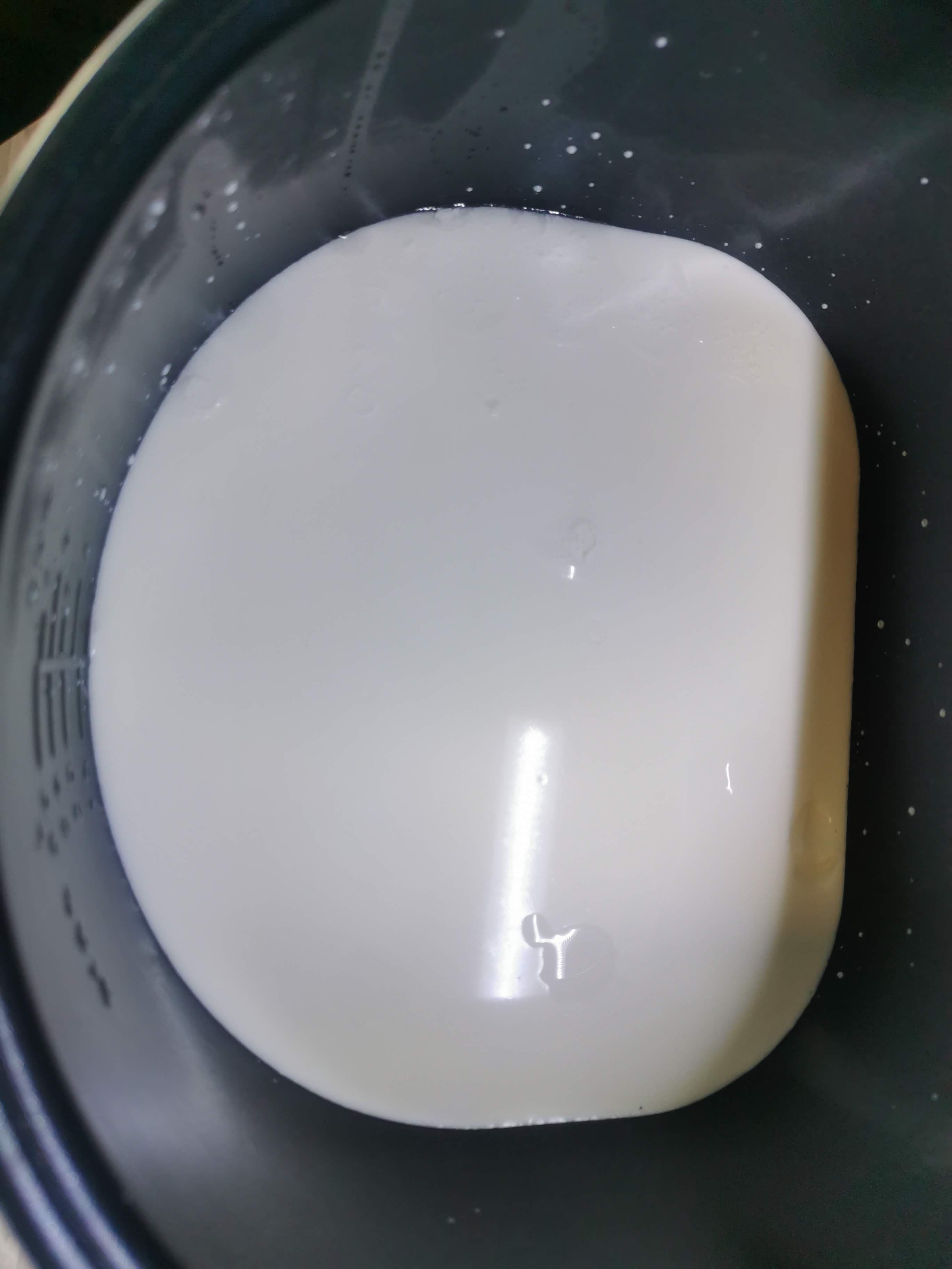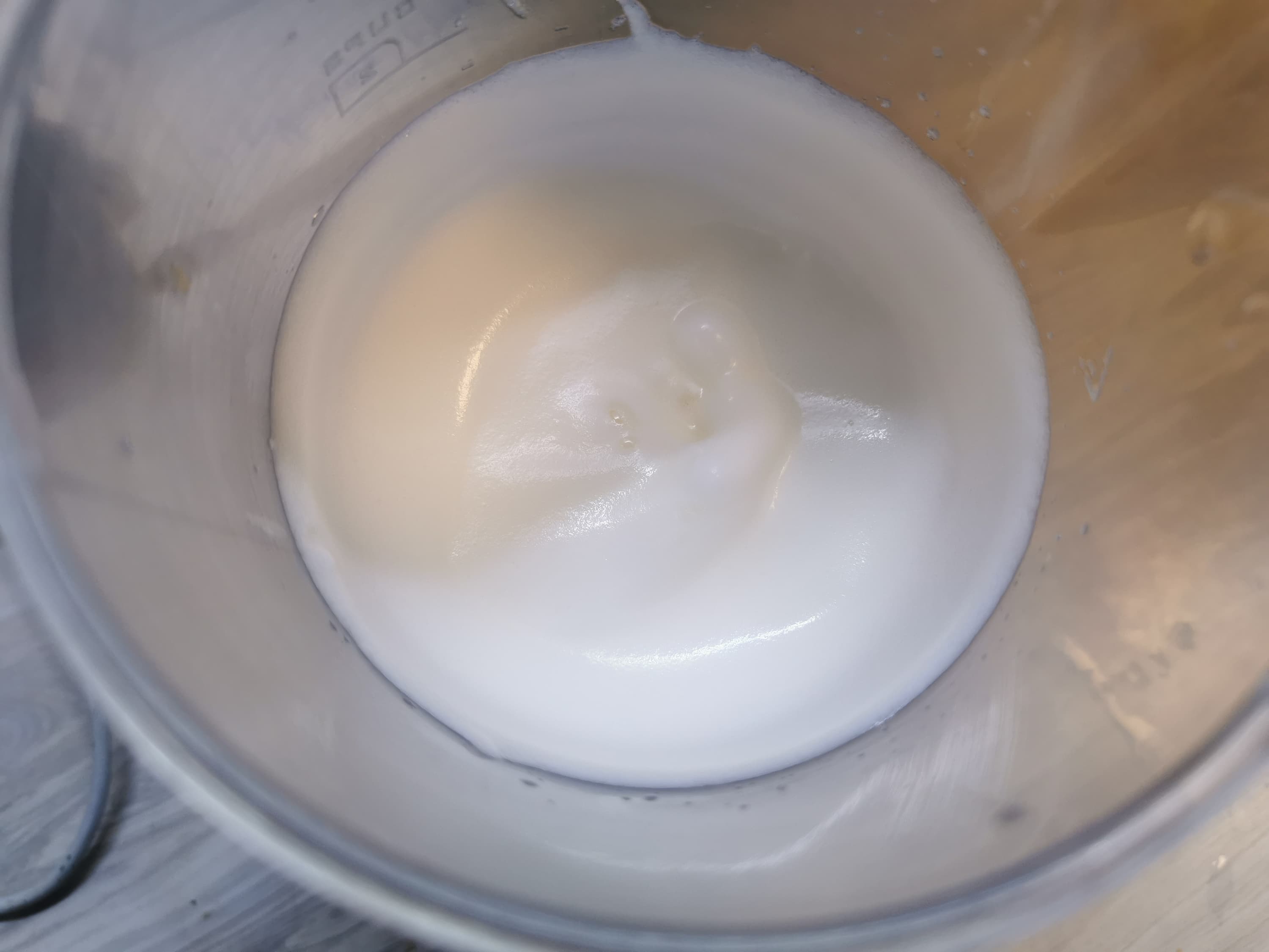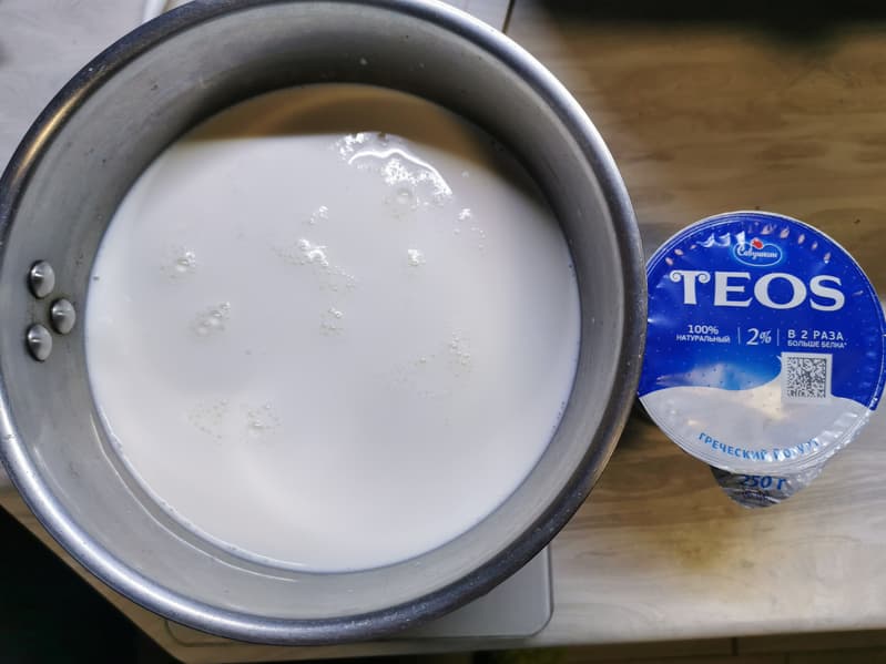 Мы взяли упаковку свежего греческого йогурта, 500 мл молока и 500 мл 10%-ных сливок, смешали их и залили в одну из чаш.