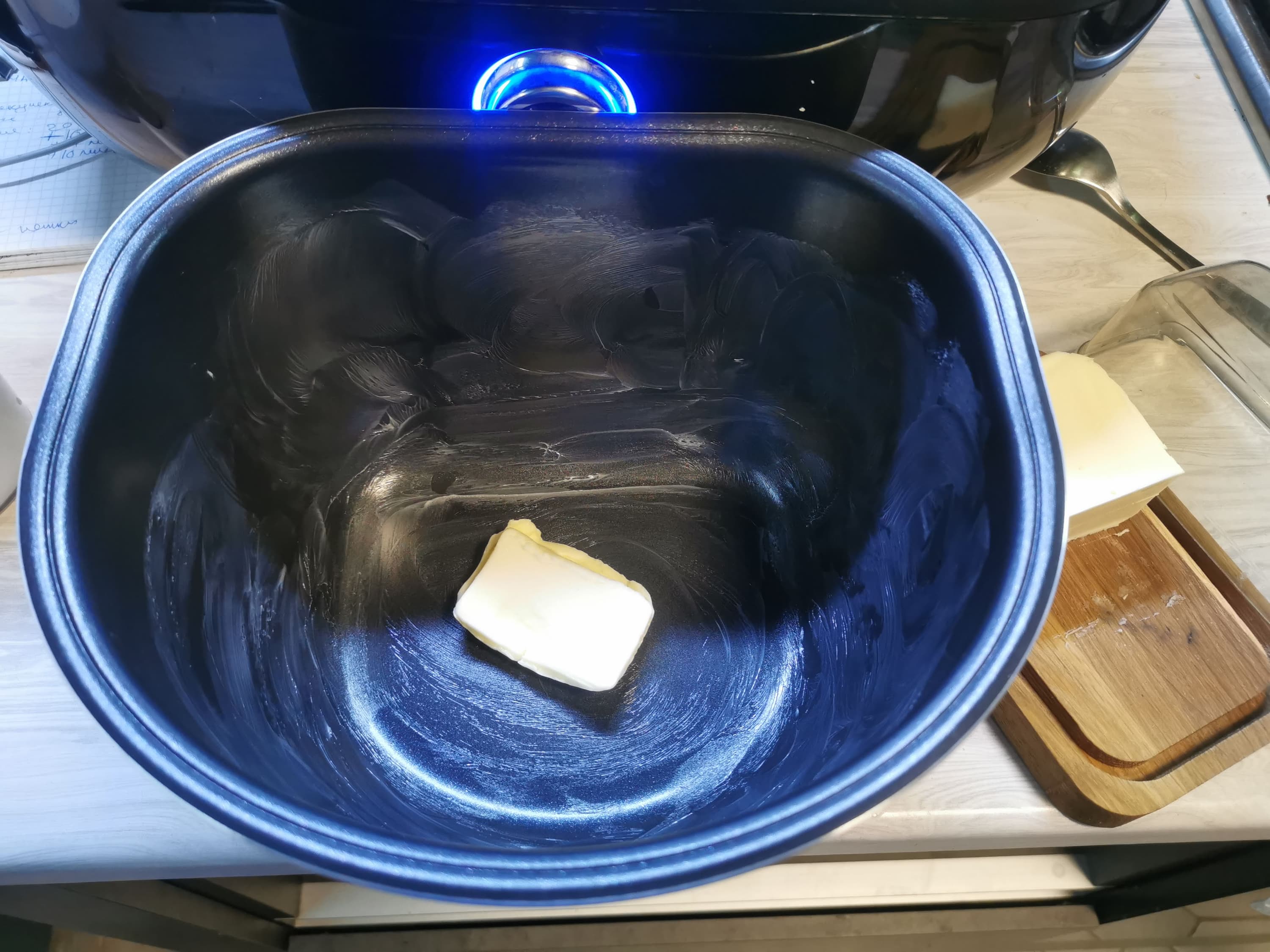 Получившуюся массу, не сильно уплотняя, переложили в смазанную растительным маслом чашу мультиварки.