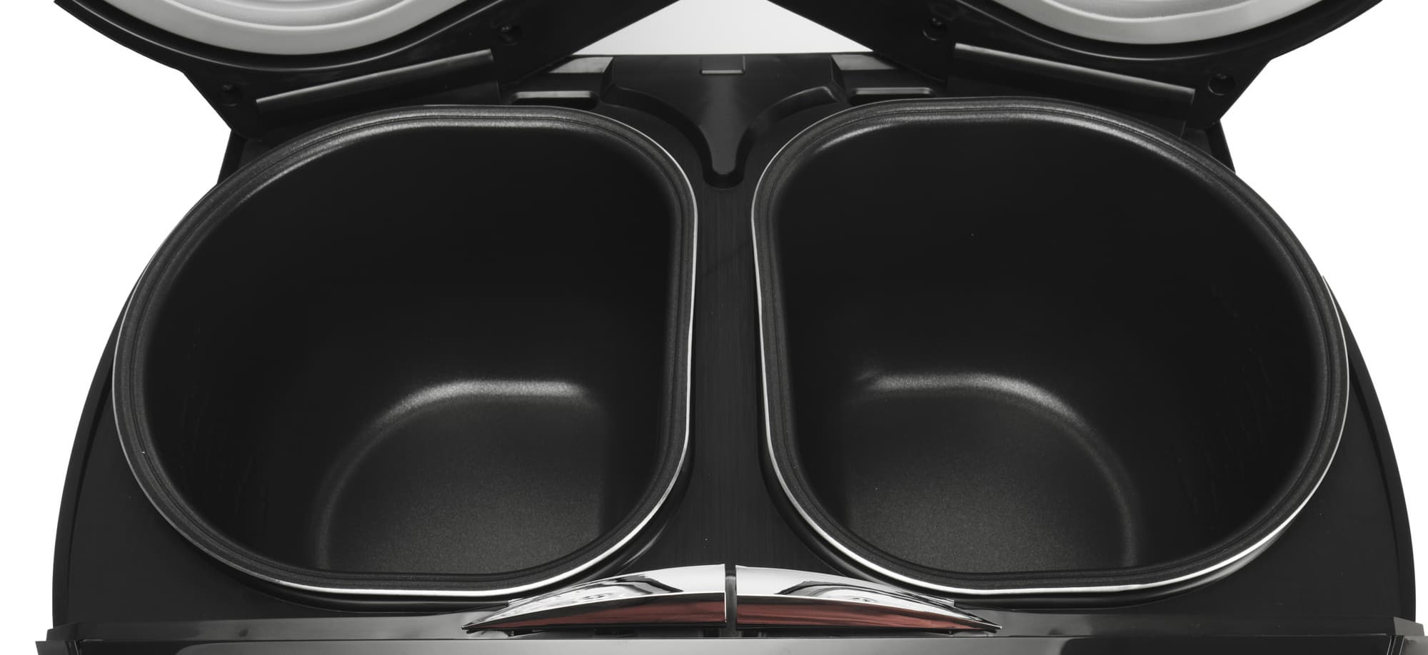 Garlyn MR-Duo 15 — крупногабаритный прибор, способный заменить собой сразу несколько видов техники и накормить большую семью. Две кастрюли общим объемом 9 литров, стоящие на плите, заняли бы больше места, да к тому же их не получится оставить без присмотра, а тем более — запечь в них пирог или мясо. Мультиварка Garlyn с двумя дверцами и двумя чашами отлично справляется с самостоятельной работой и разными способами приготовления пищи — только заложите продукты.