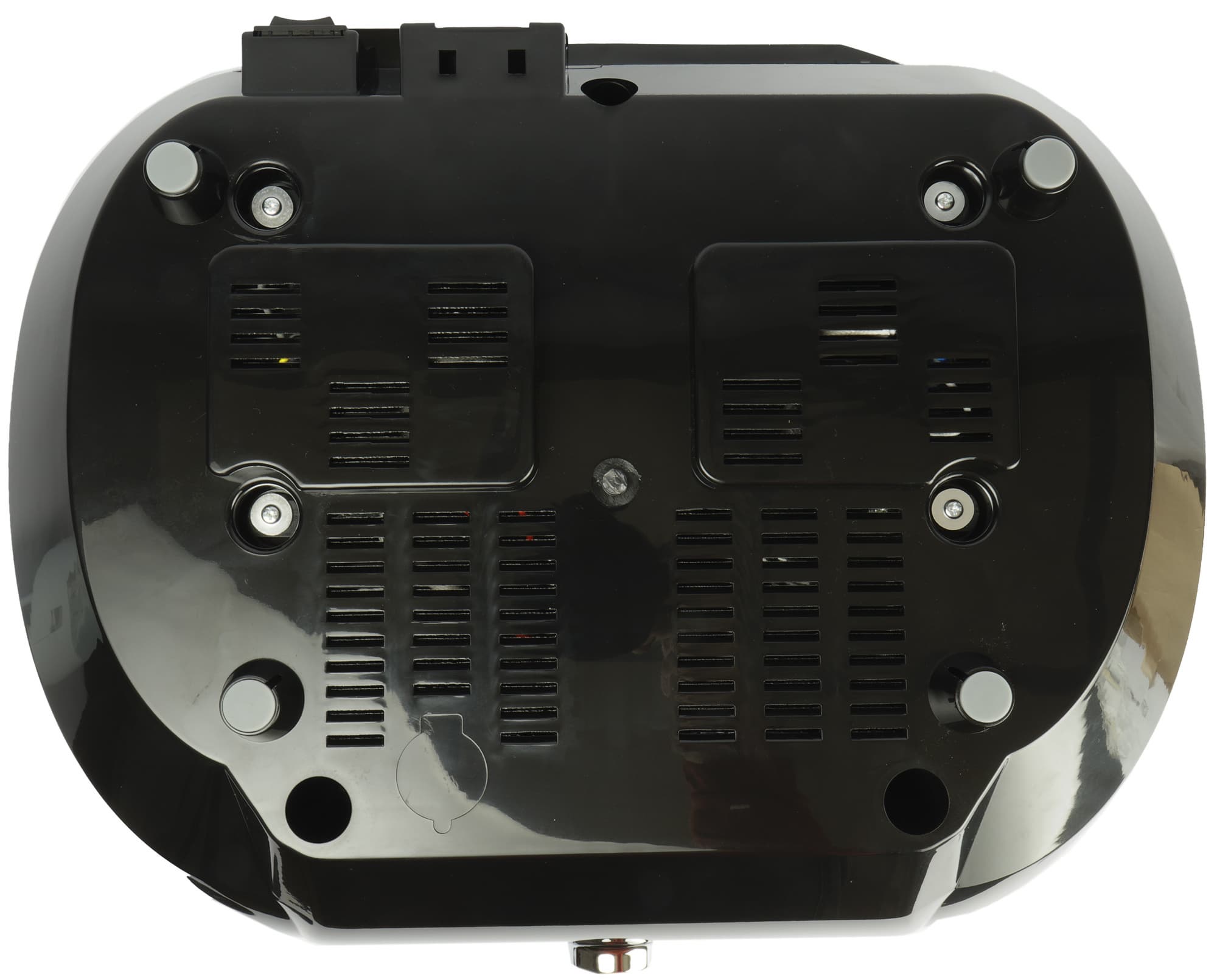 На дне прибора расположены вентиляционные отверстия, а также 4 пластиковые прорезиненные ножки, препятствующие скольжению устройства по поверхности.