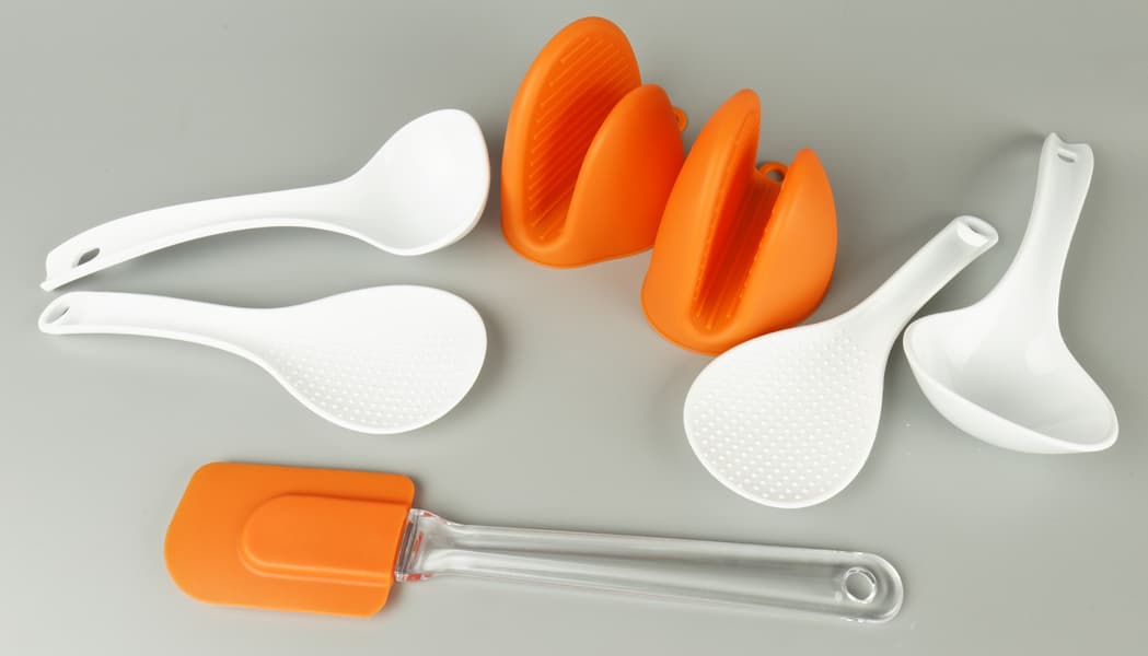 Но на этом производитель не остановился и позаботился об удобстве эксплуатации мультиварки до мелочей. Вместе с устройством поставляются 2 удобные силиконовые прихватки оранжевого цвета с ребристой противоскользящей поверхностью и петельками, чтобы их можно было подвесить, 2 пластиковые ложки и 2 черпака, а также оранжевая силиконовая лопатка.