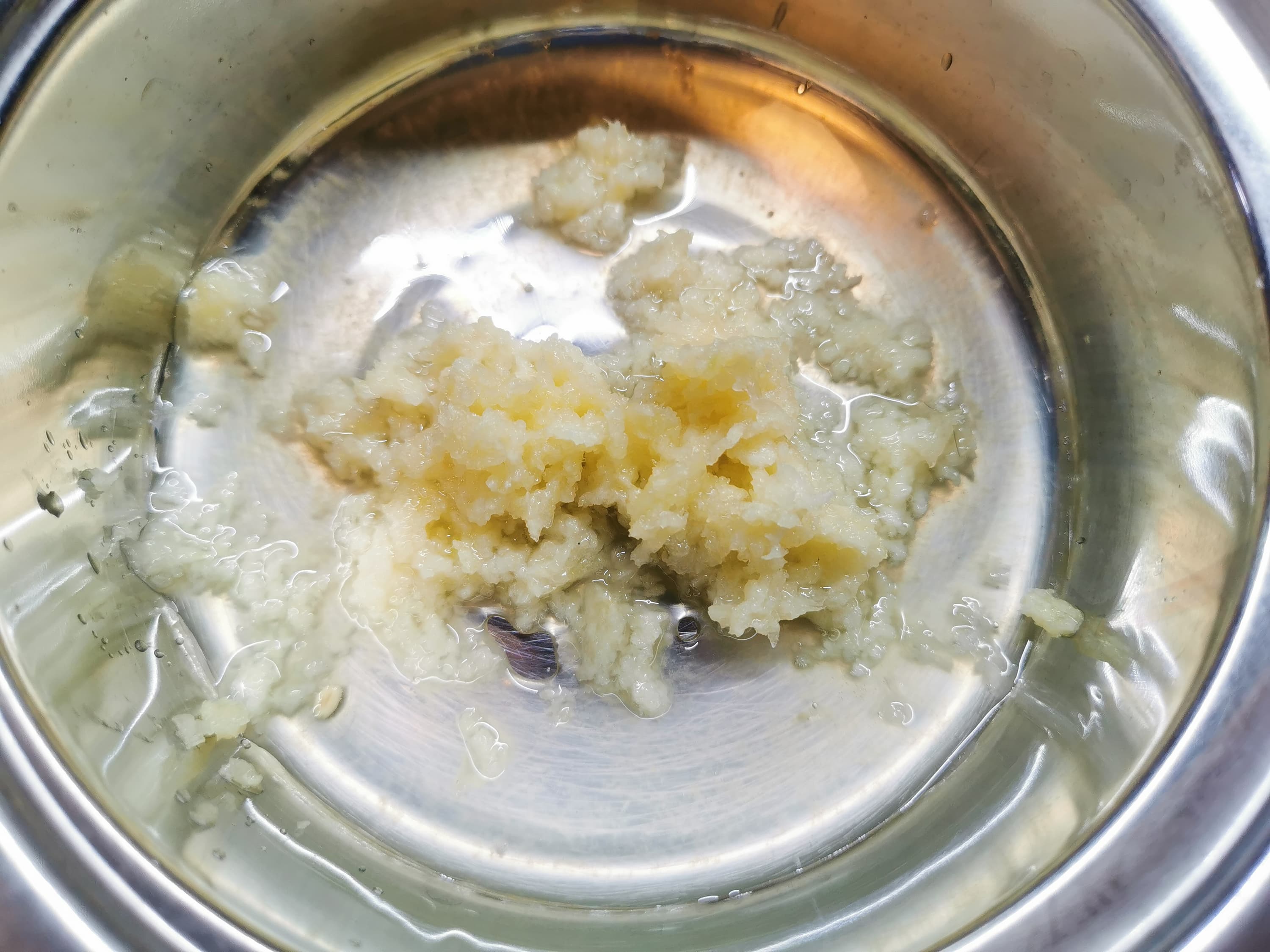 Для начала мы выжали из 30 г лимона сок и с помощью чеснокодавилки переработали чеснок в кашицу.