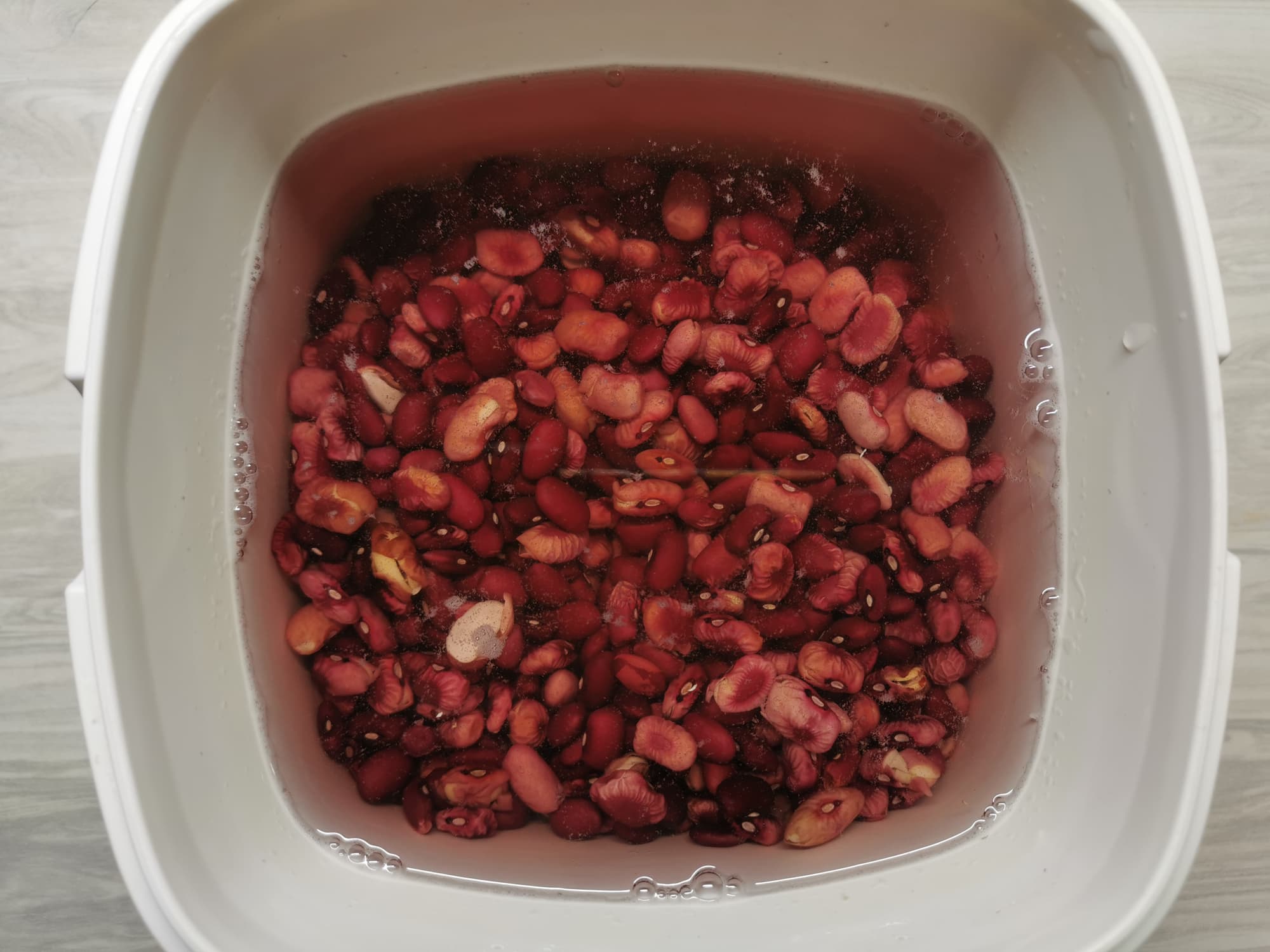 Для начала мы промыли и замочили красную фасоль на 8 часов.