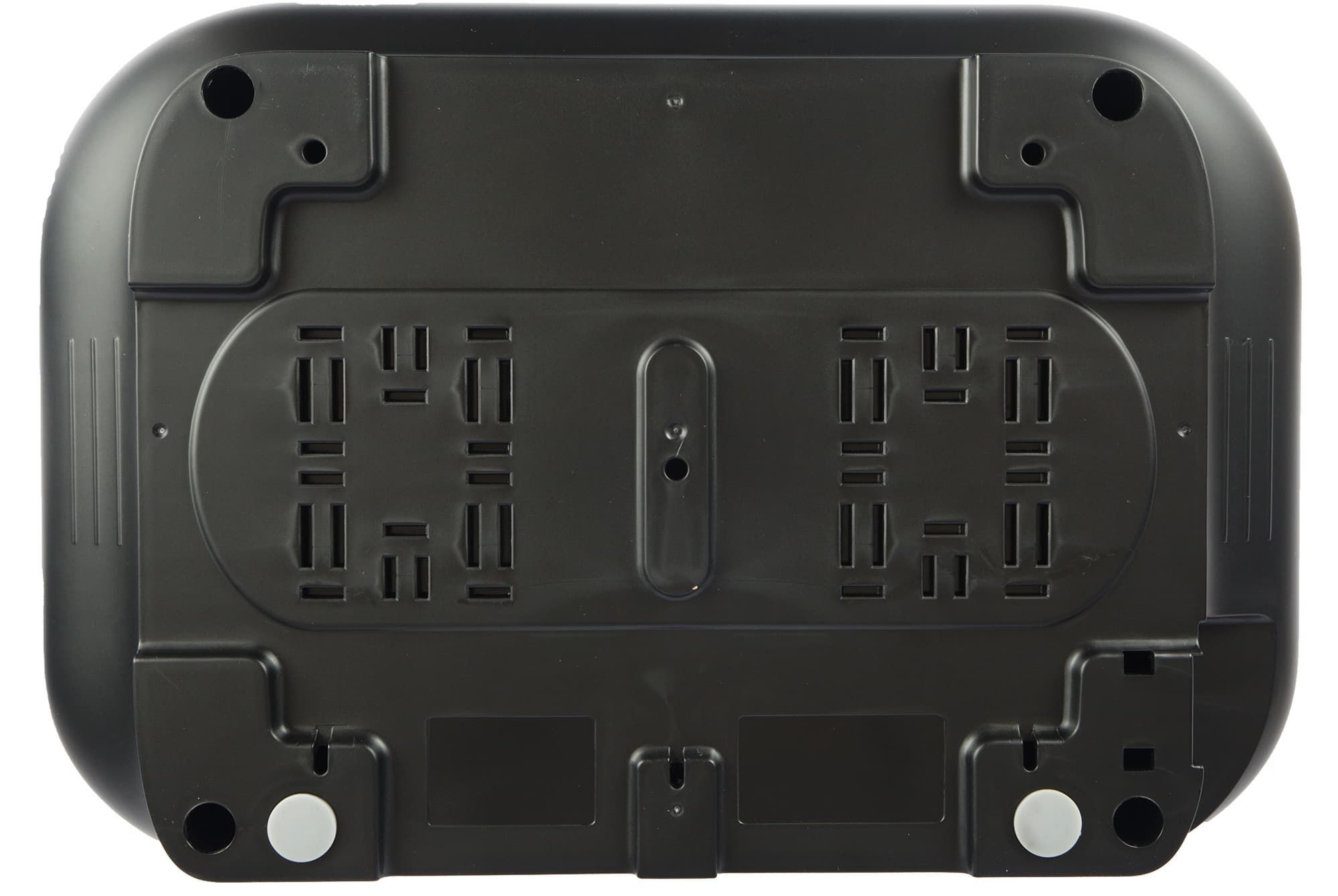 На дне прибора расположены вентиляционные отверстия, а также с задней стороны находятся 2 пластиковые ножки, препятствующие скольжению устройства по поверхности.