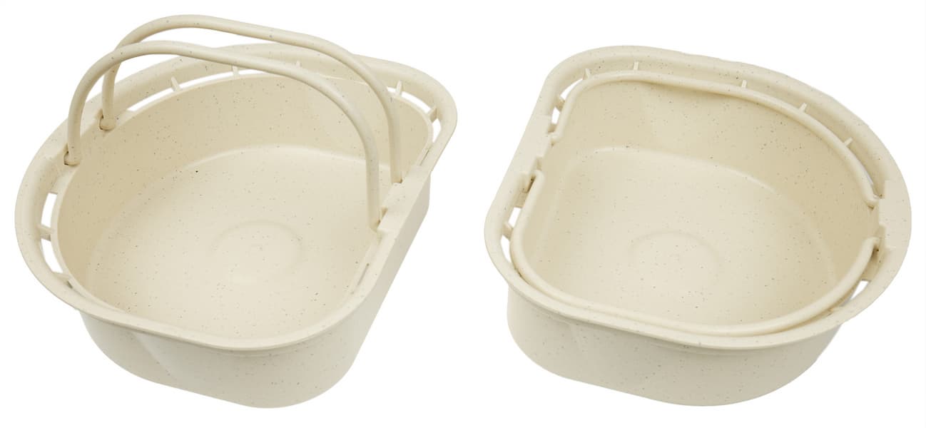 В комплекте идут 2 контейнера для приготовления на пару́ с отверстиями по верхнему краю и ручками для удобного извлечения и установки.