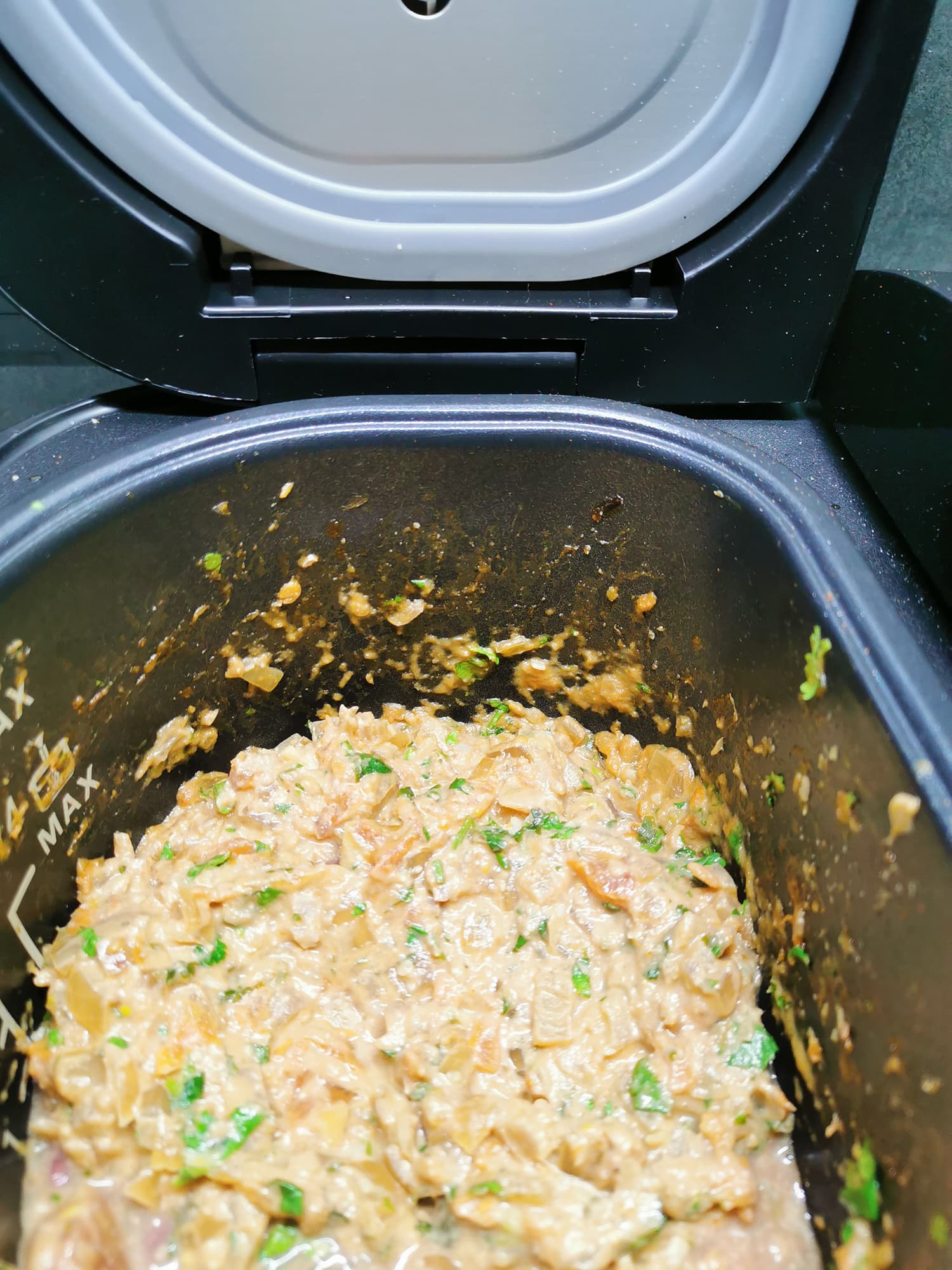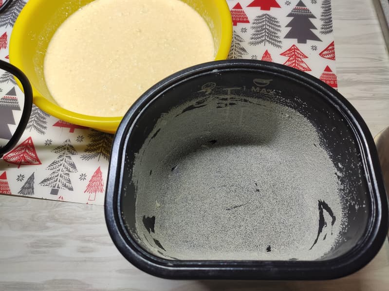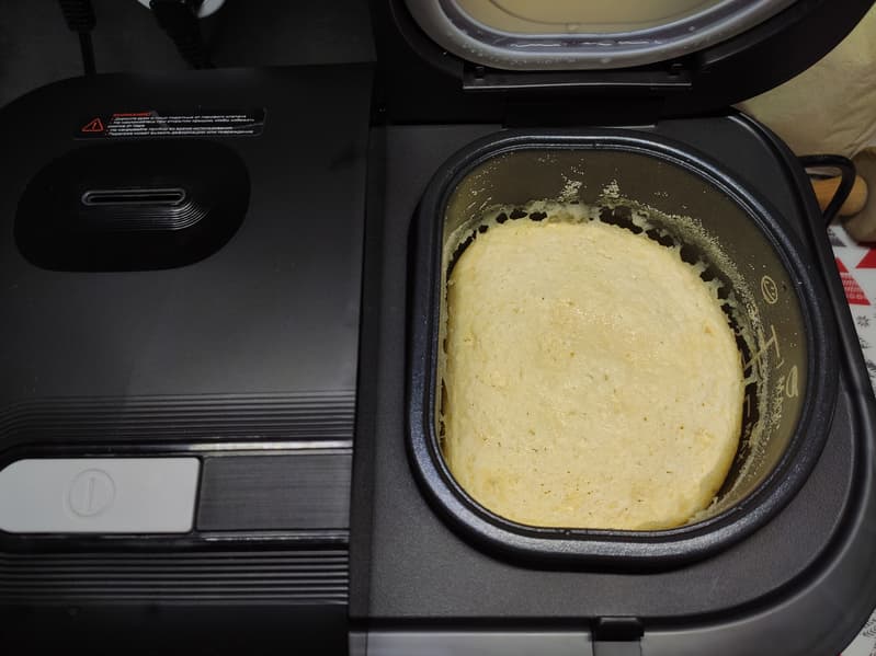 После чего переложили полученную массу в чашу, установили чашу в мультиварку и запустили режим выпечки на 1 час.