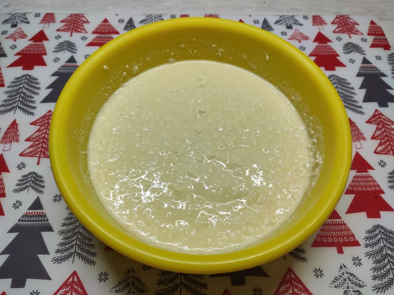 Все ингредиенты, кроме манки, тщательно перемешали между собой.