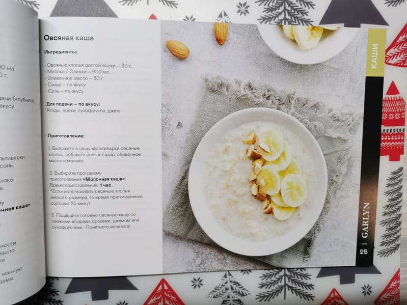 Для приготовления молочной каши мы воспользовались рецептом из прилагающейся к мультиварке книги.