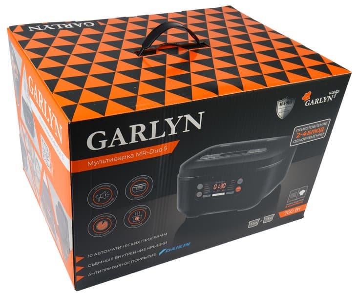 Garlyn MR-Duo 5 — компактный помощник, занимающий минимум места на кухне, при этом способный заменить собой сразу несколько видов техники. Две полуторалитровые кастрюли, стоящие на плите, заняли бы больше места, да к тому же их не получится оставить без присмотра, а там более — запечь в них пирог или мясо. Мультиварка Garlyn же великолепно справляется с самостоятельной работой и разными способами приготовления пищи — только заложите продукты!