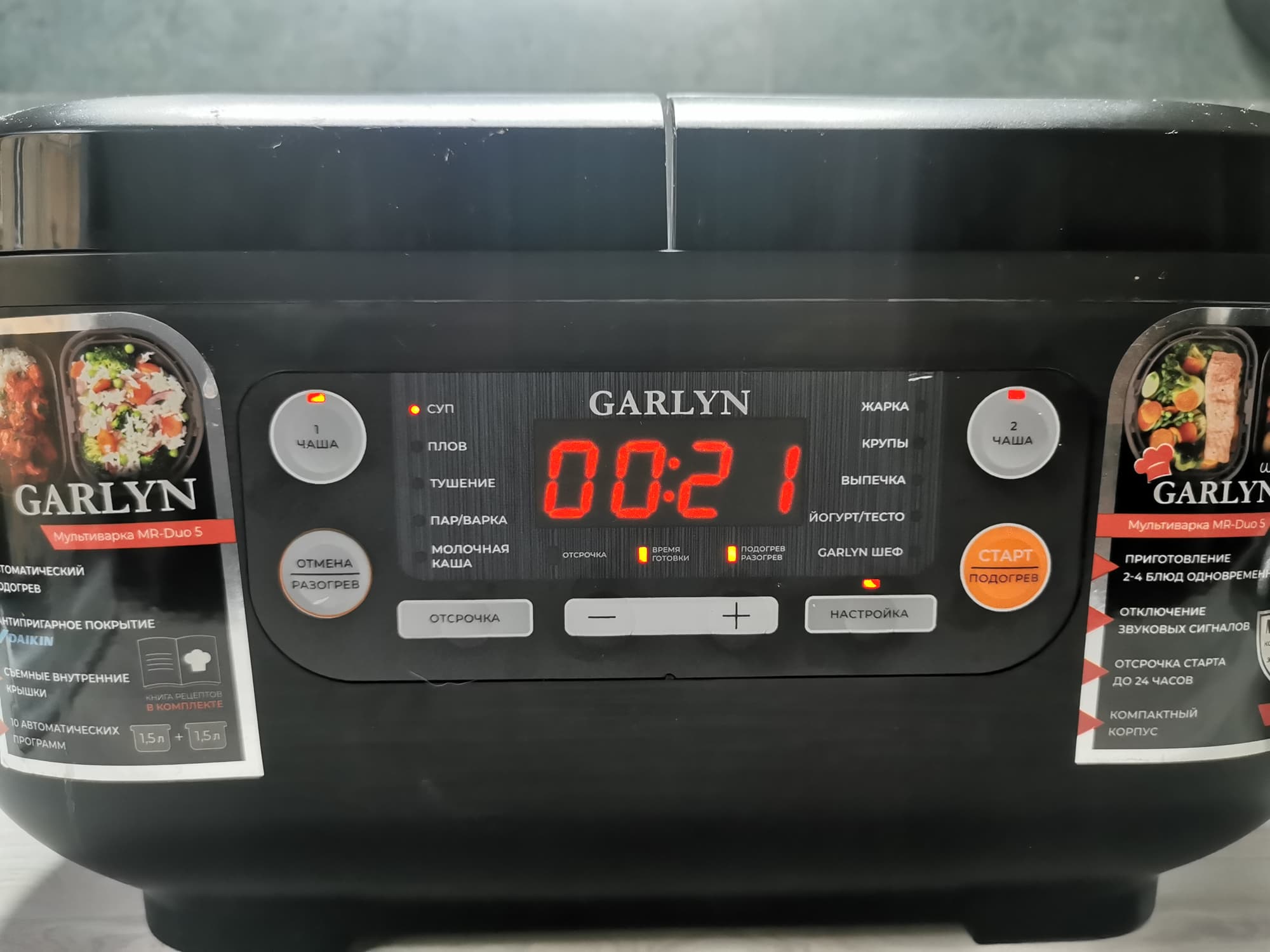 Сегодня у нас на тестах пока еще редкий зверь — мультиварка с 2 чашами. Garlyn Mr-Duo 5 может справиться с приготовлением сразу нескольких блюд, причем даже не двух, а четырех, ведь помимо чаш в комплекте идут еще и контейнеры для приготовления на пару́.